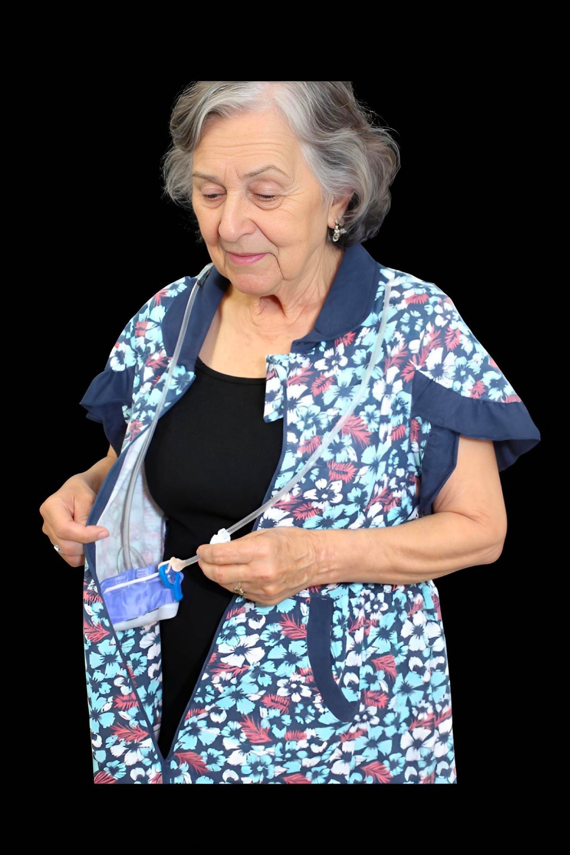 they feature a large pocket inside with snap buttons, perfect for safely storing medical tapes or other necessities. Whether you'r lounging at home or in need of comfortable sleepwear during medical treatments, these pyjamas offer both comfort and functionality to enhance your daily routine.