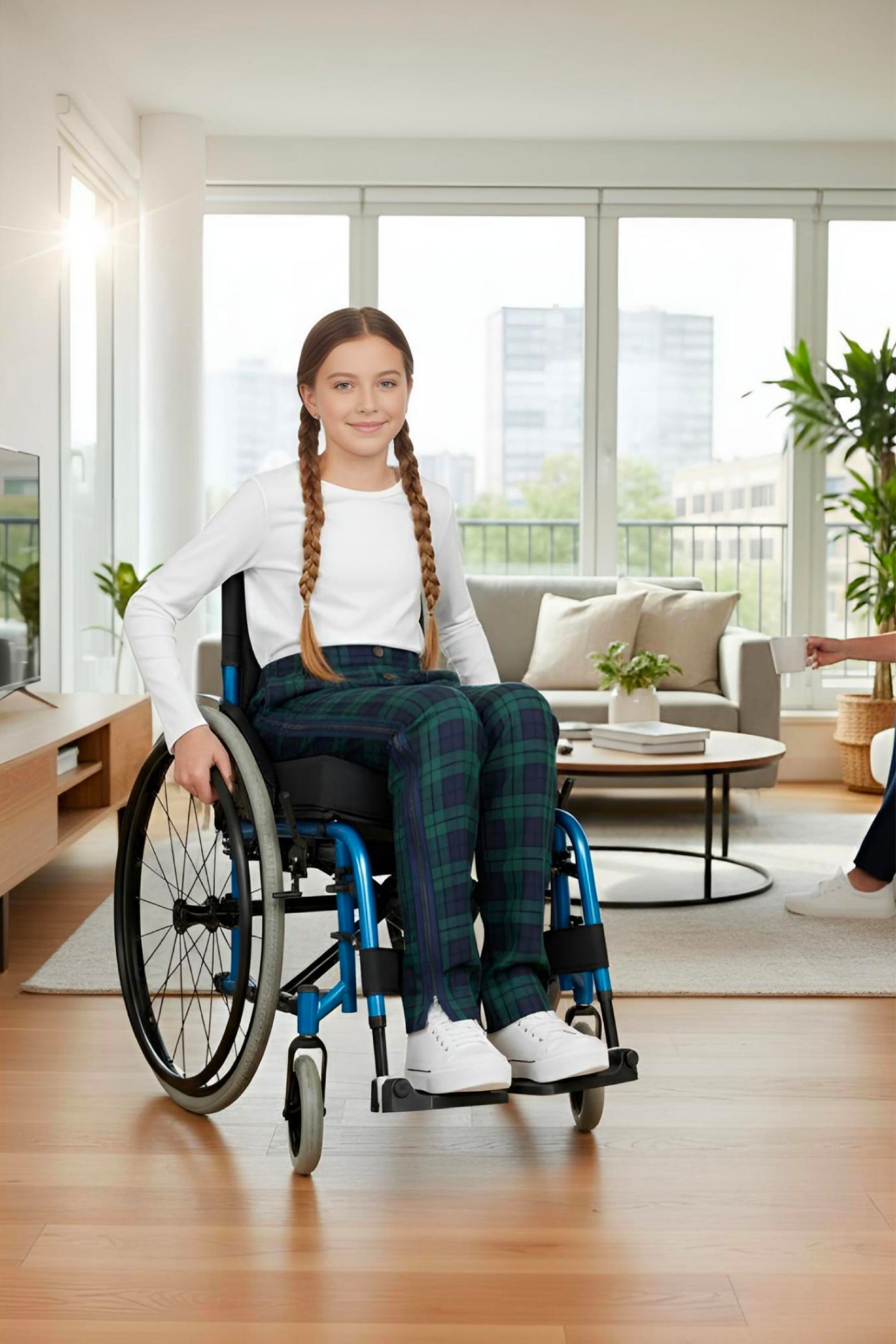 Adaptive Kids Stretch Pants: Elastic Waistband, Full Side Zipper for Easy Undressing