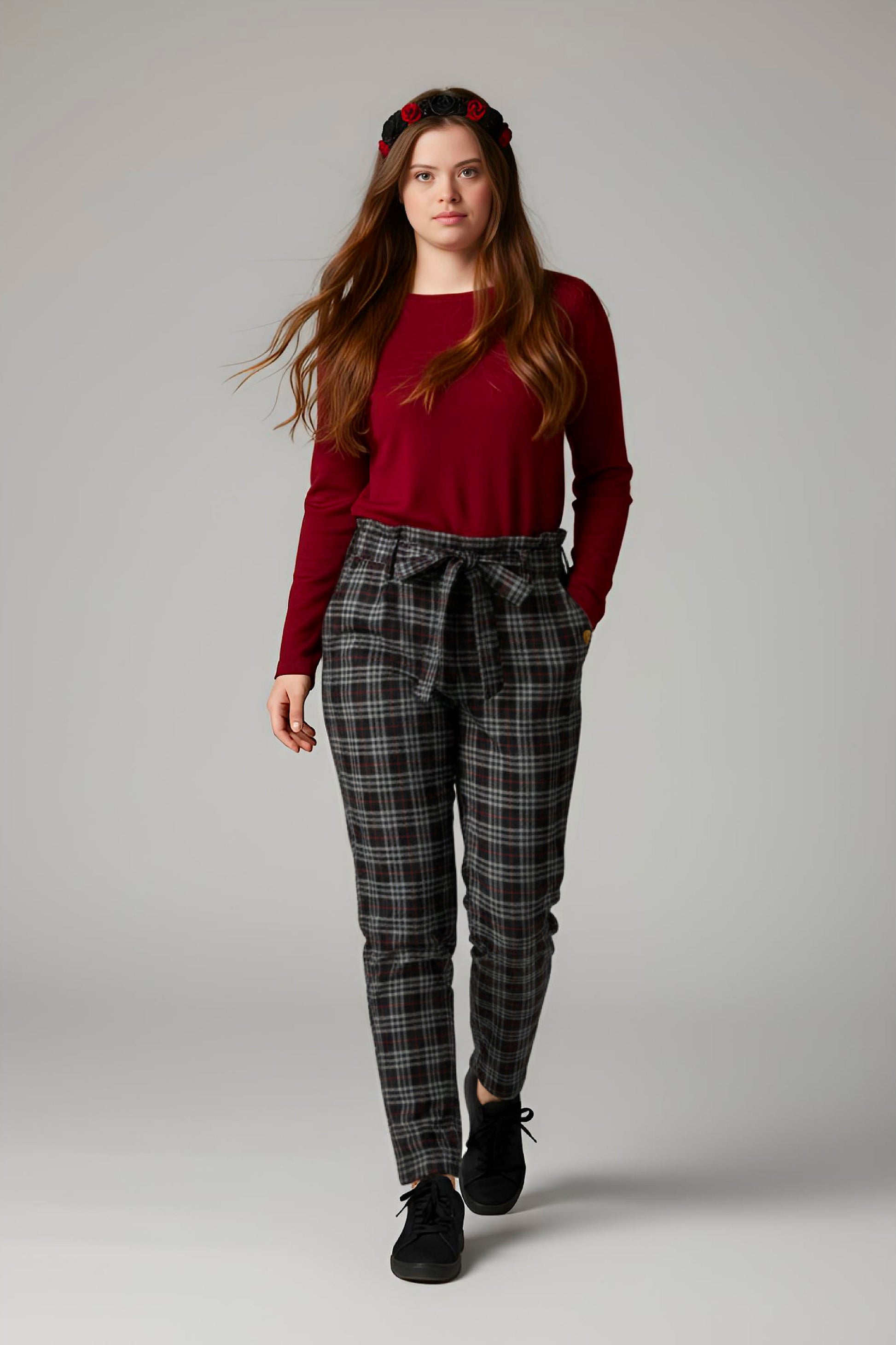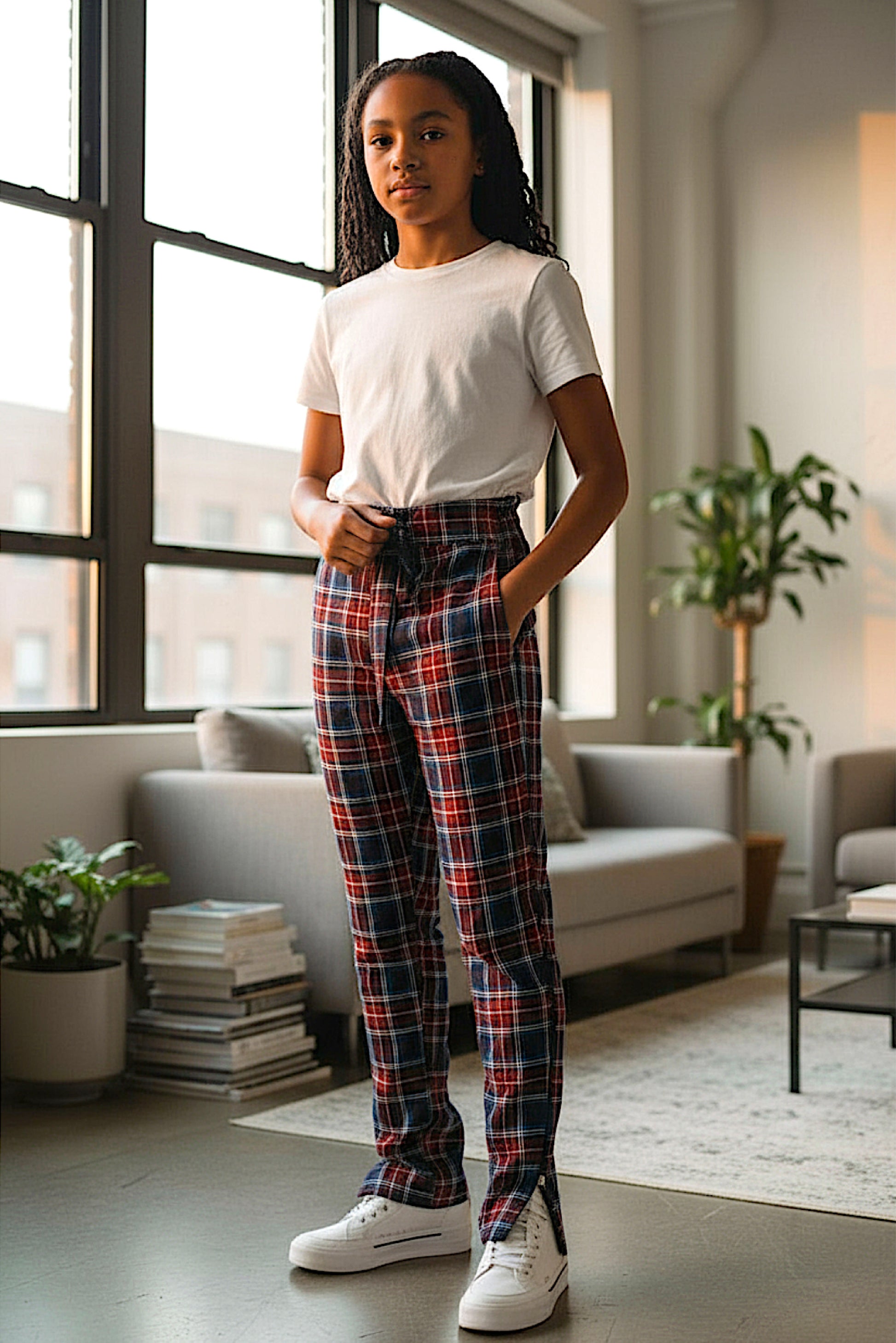 COMBINES ELEGANCE AND COMFORT: Our Adaptive Woven Plaid Fabric Pants offer a seamless blend of style and comfort, ensuring you look and feel your best throughout the day.