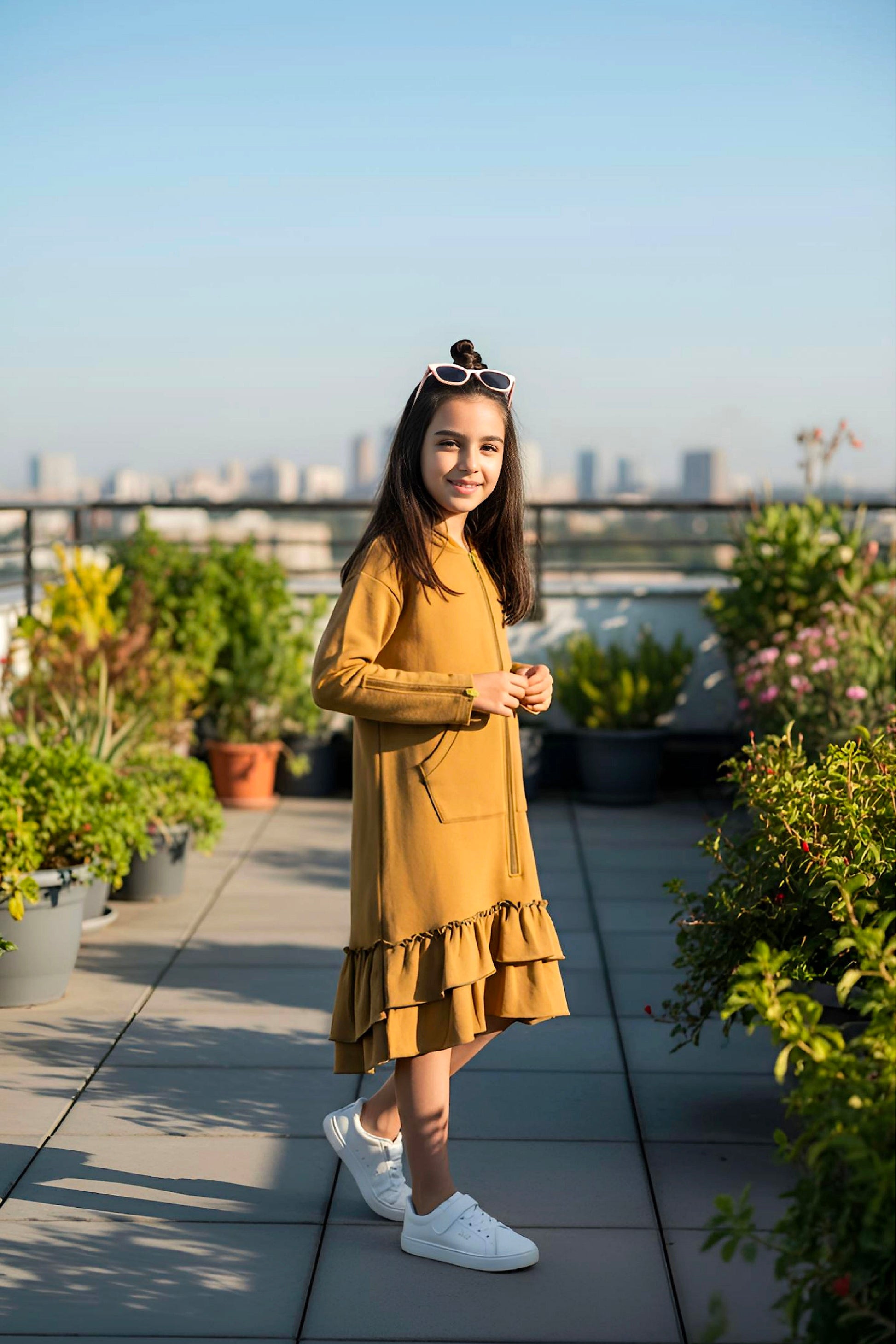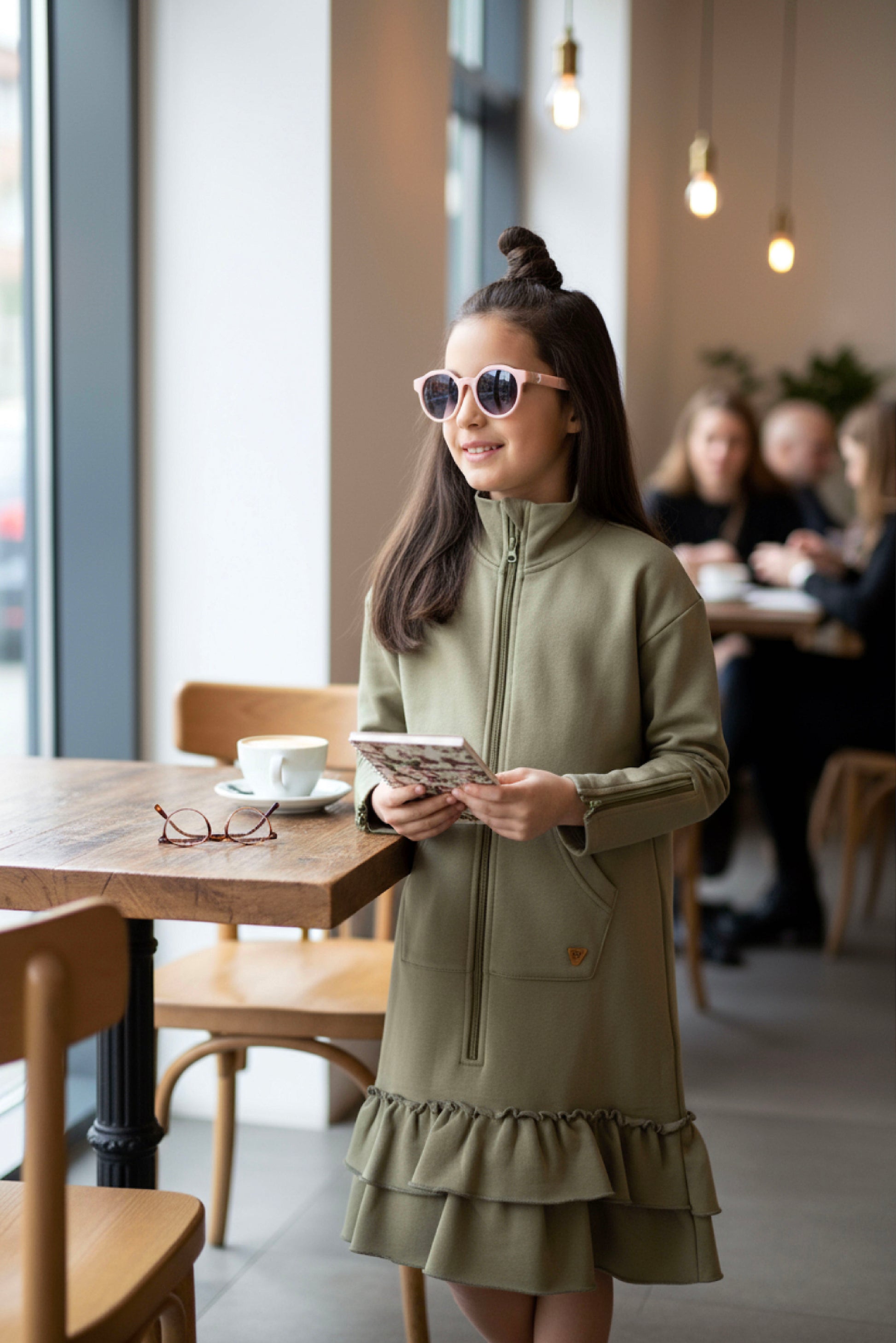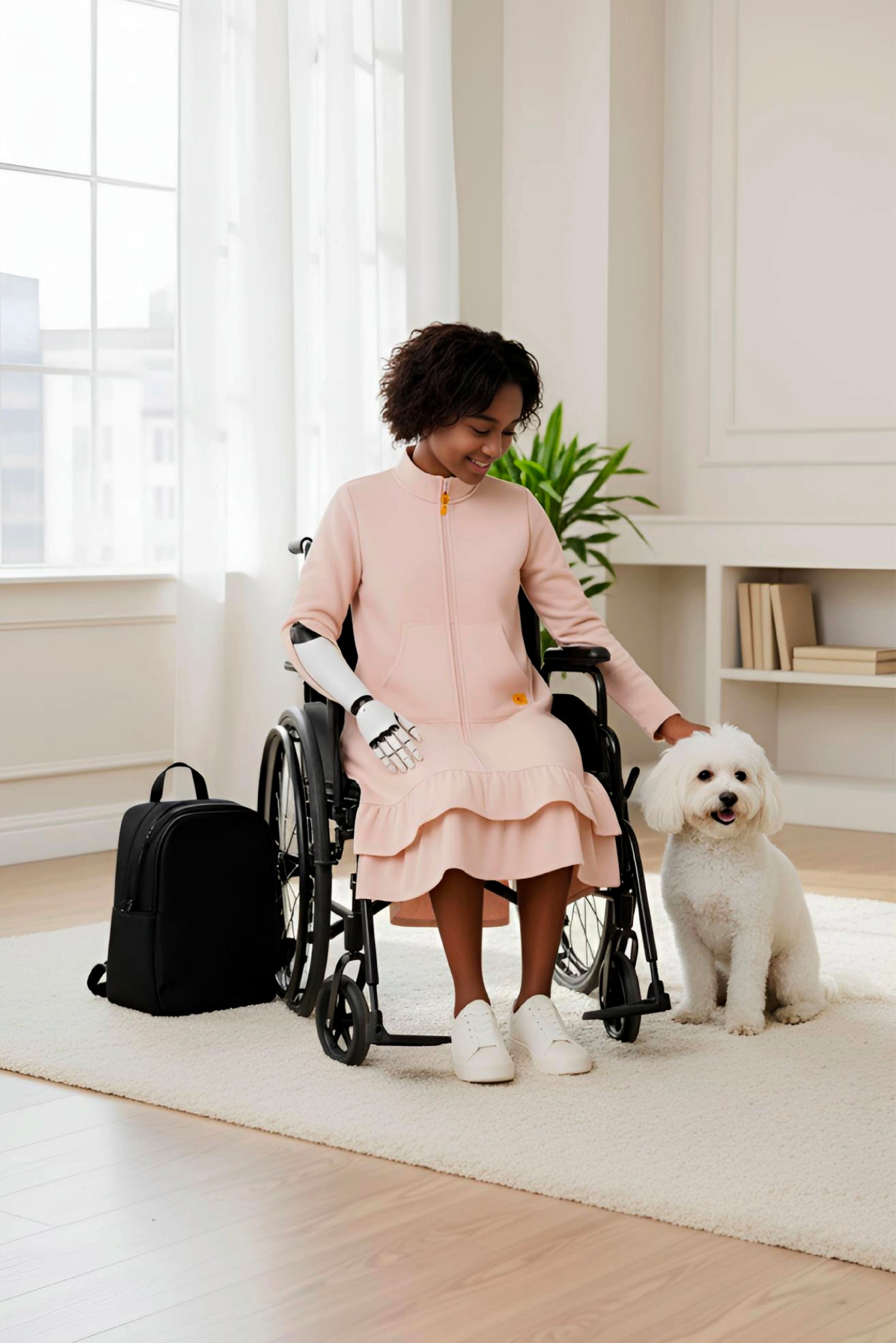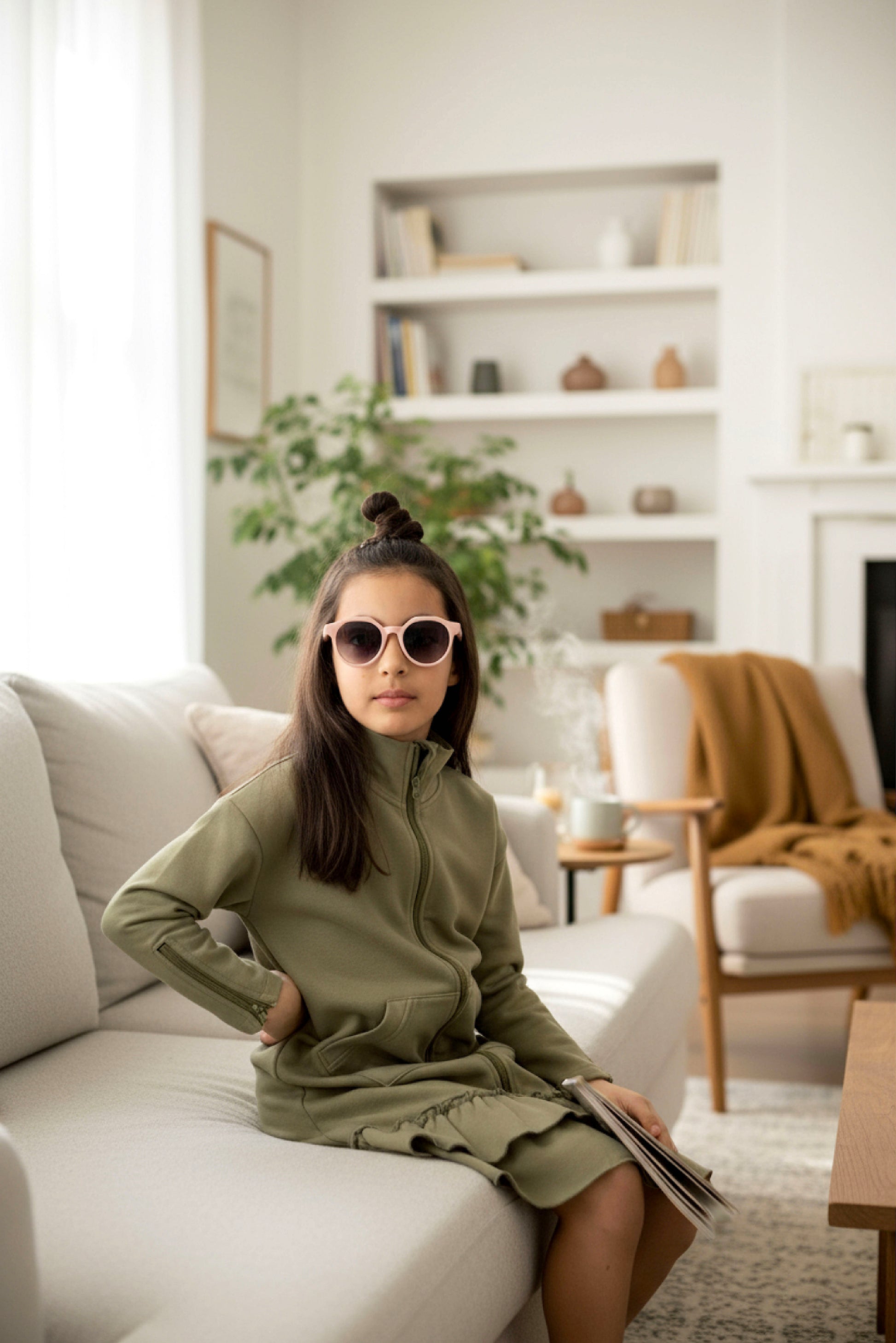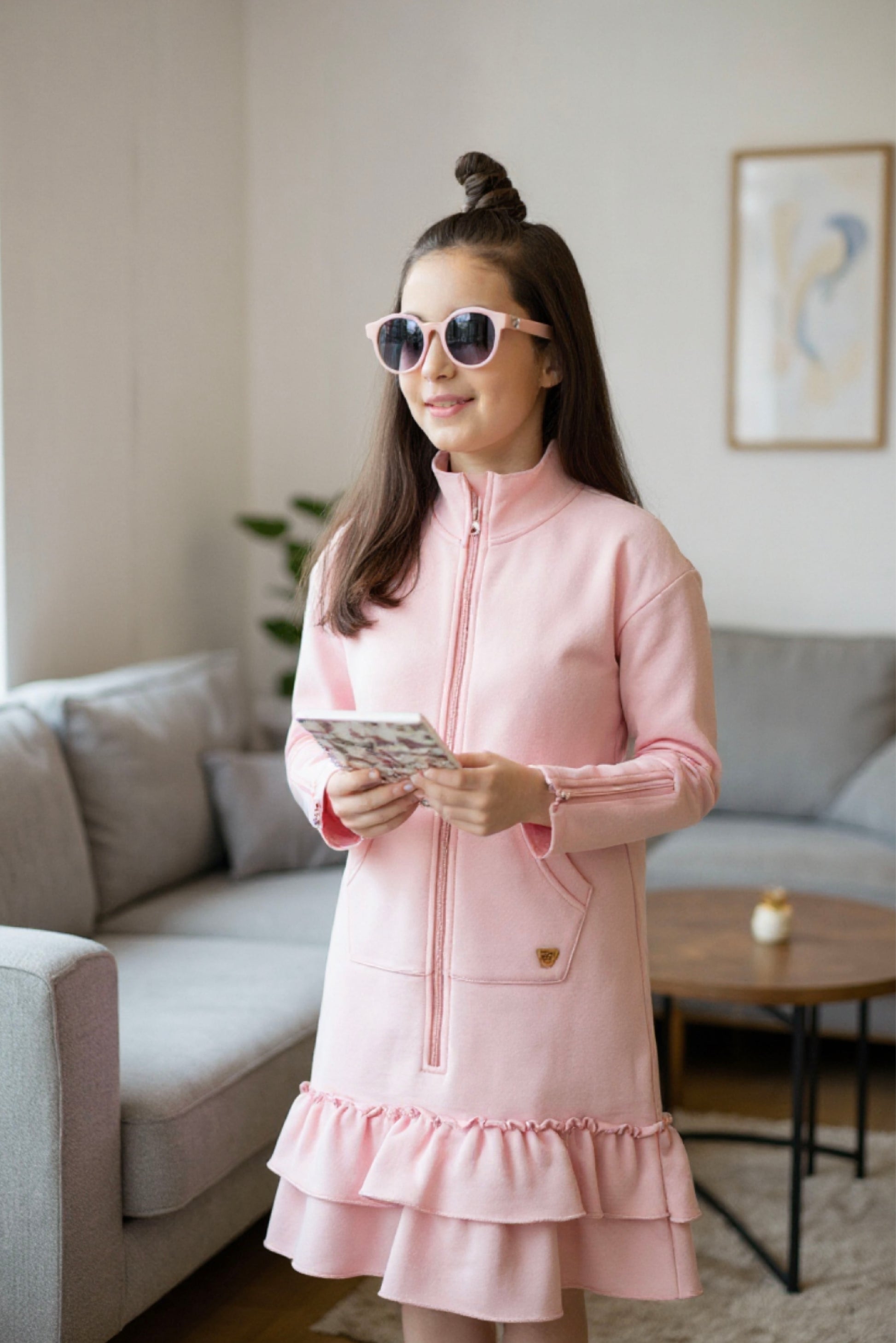Kids Adaptive Dolman Sweatshirt Dress with Zipper & Cargo Pocket