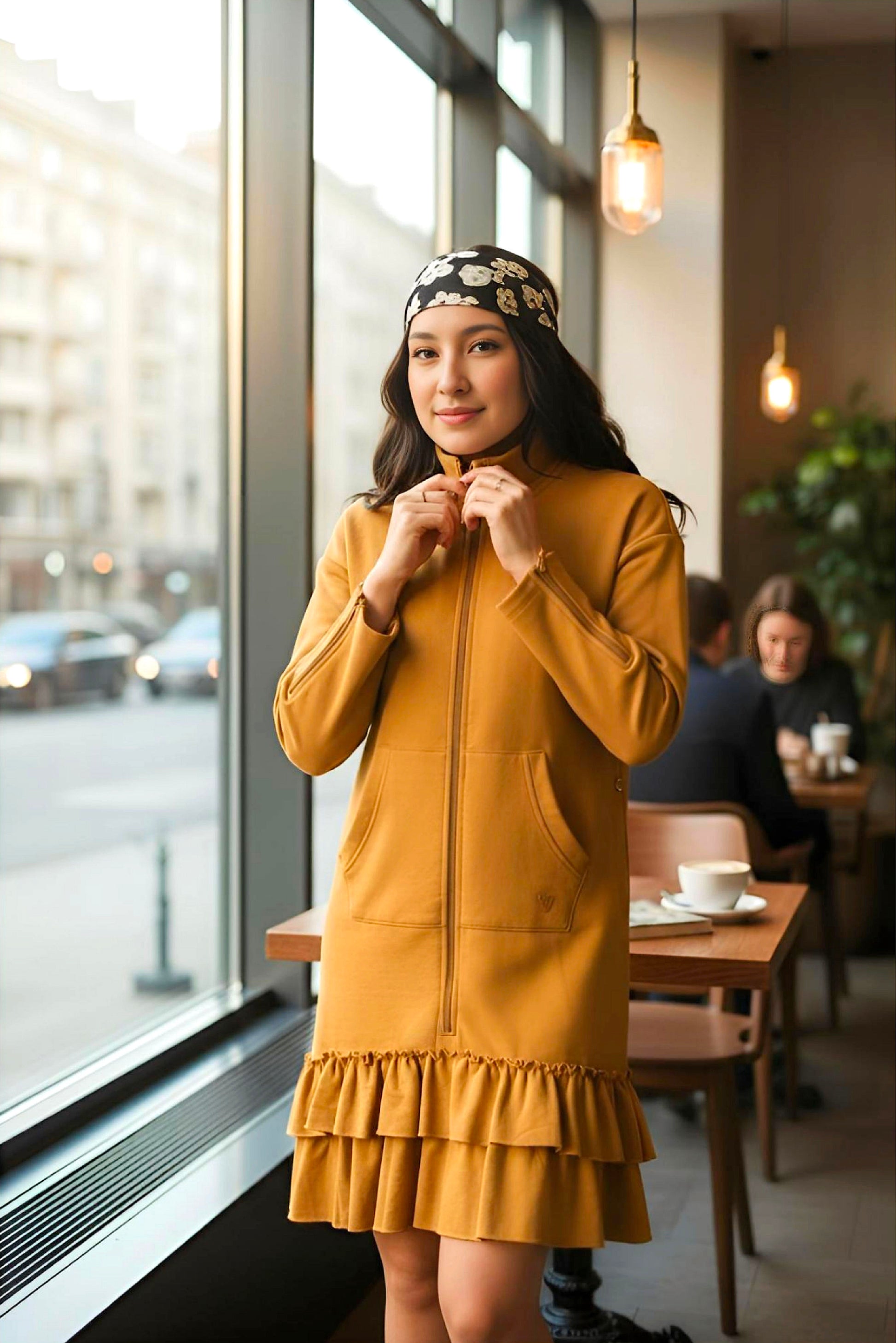 ICONIC DESIGN: Our Adaptive Sweatshirt Dolman Long Sleeve Dress is designed to effortlessly elevate your style, featuring a ribbed collar that adds a touch of sophistication to your ensemble.