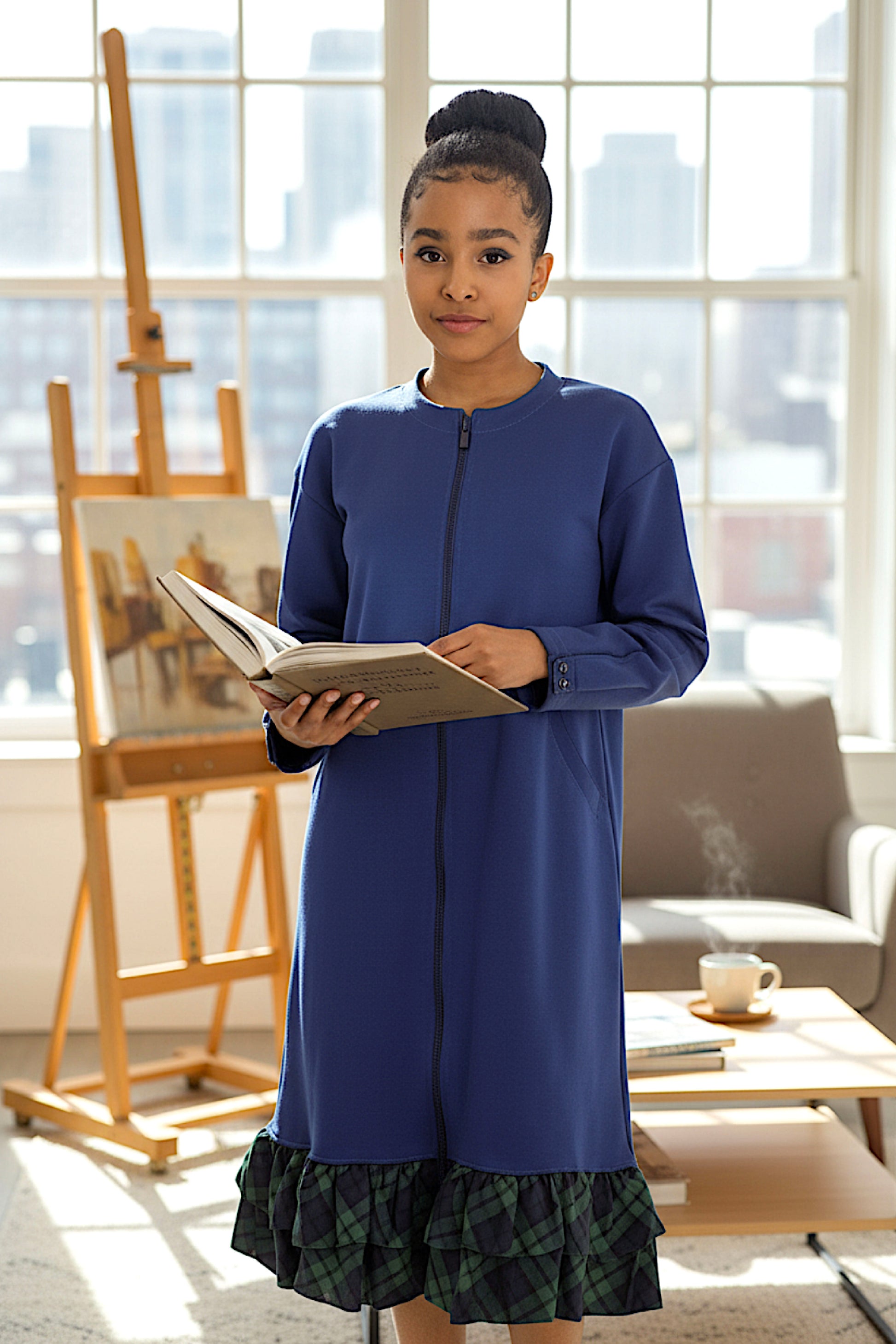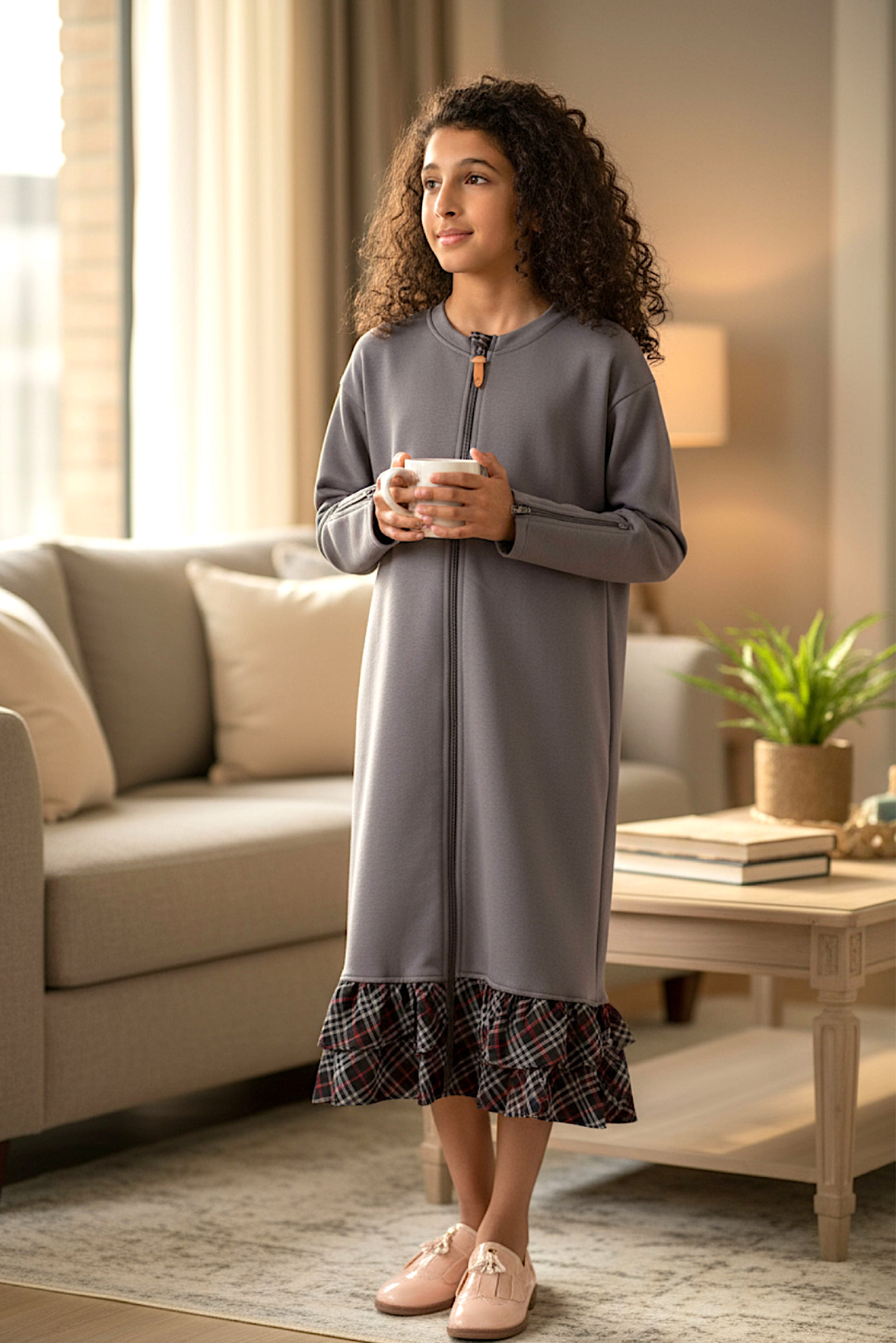 Adaptive Kids Dolman Sweatshirt Dress with full Zipper & Contrast Frills