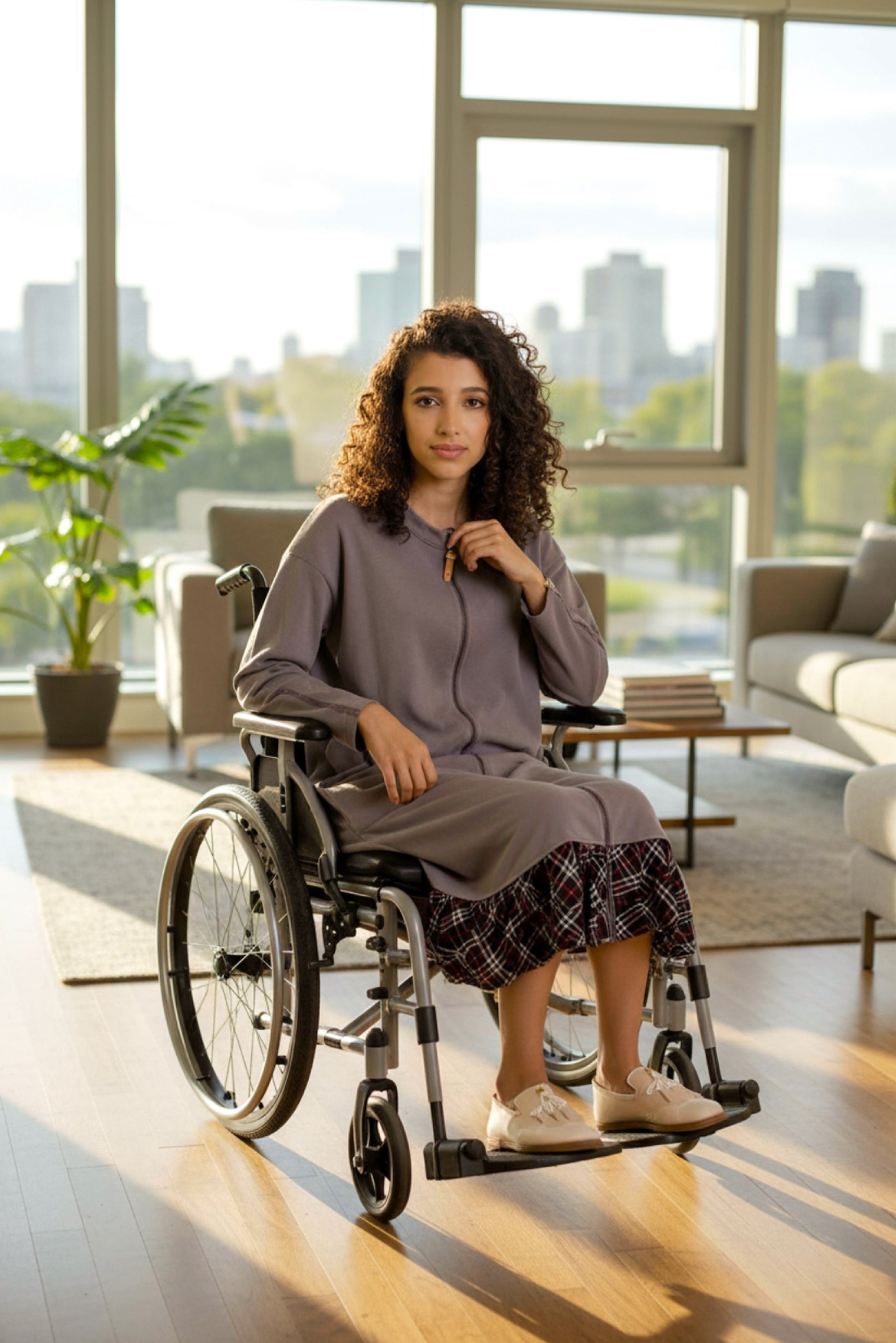 CONVENIENCE AND EASE: Equipped with a zipper on the sleeve for easy dressing, as well as a Claire button at the side seam and a small inside elastic for independence in the washroom, our dress ensures convenience and ease in every aspect of wear.