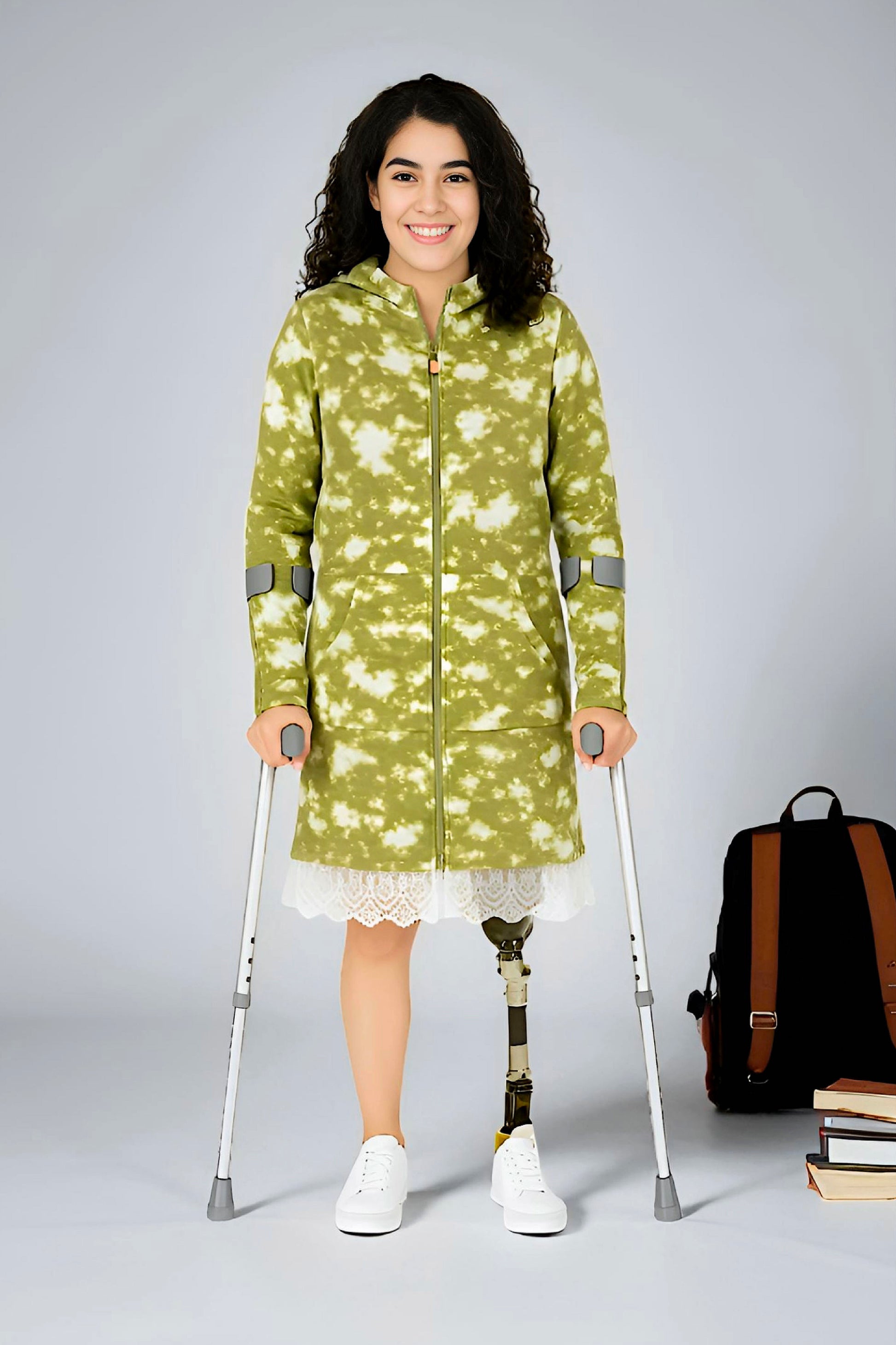 Adaptive Kids Tie-Dye Hoodie Sweatshirt Dress, Front Full Zipper and Easy-Undressing Sleeves