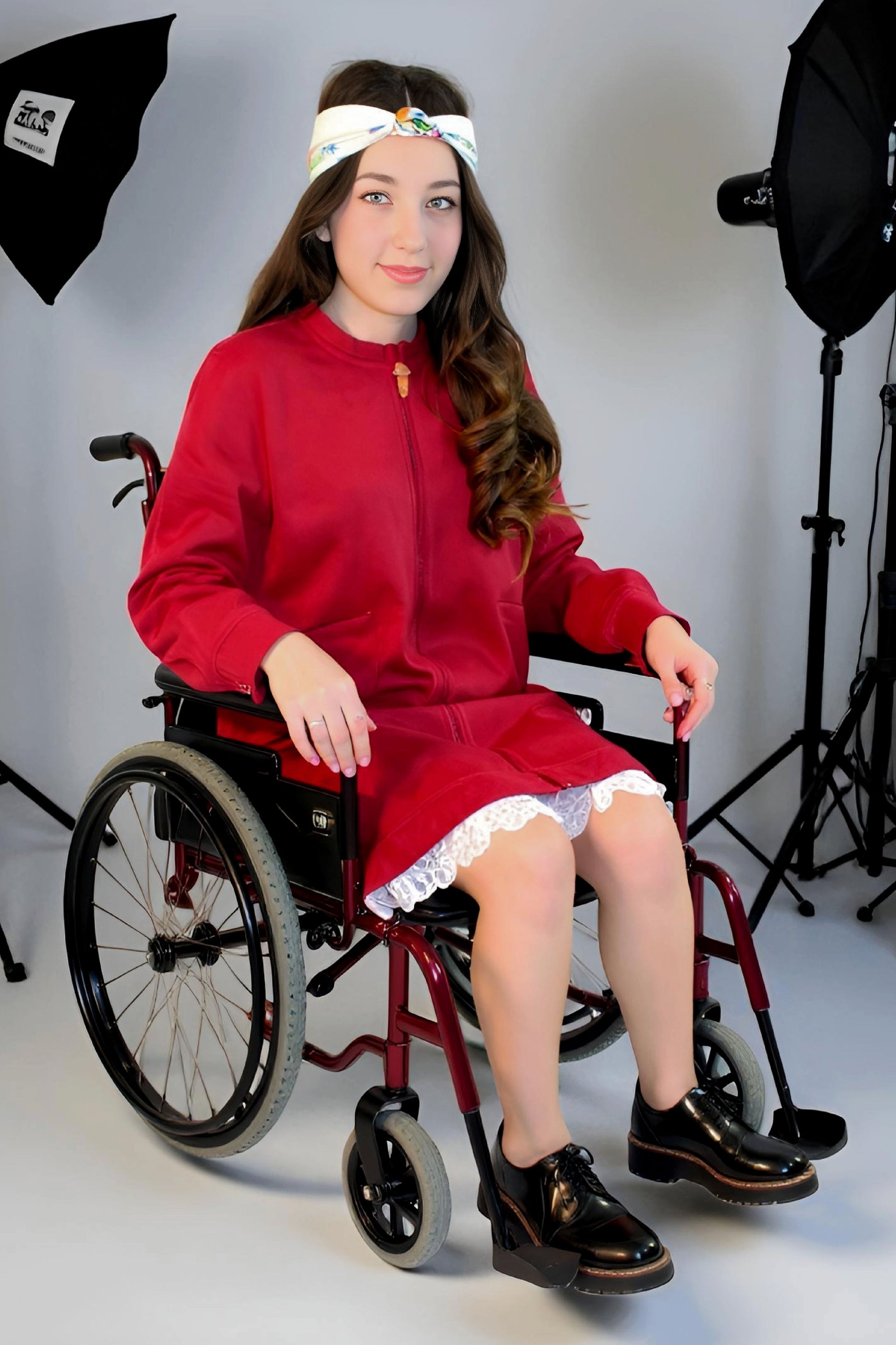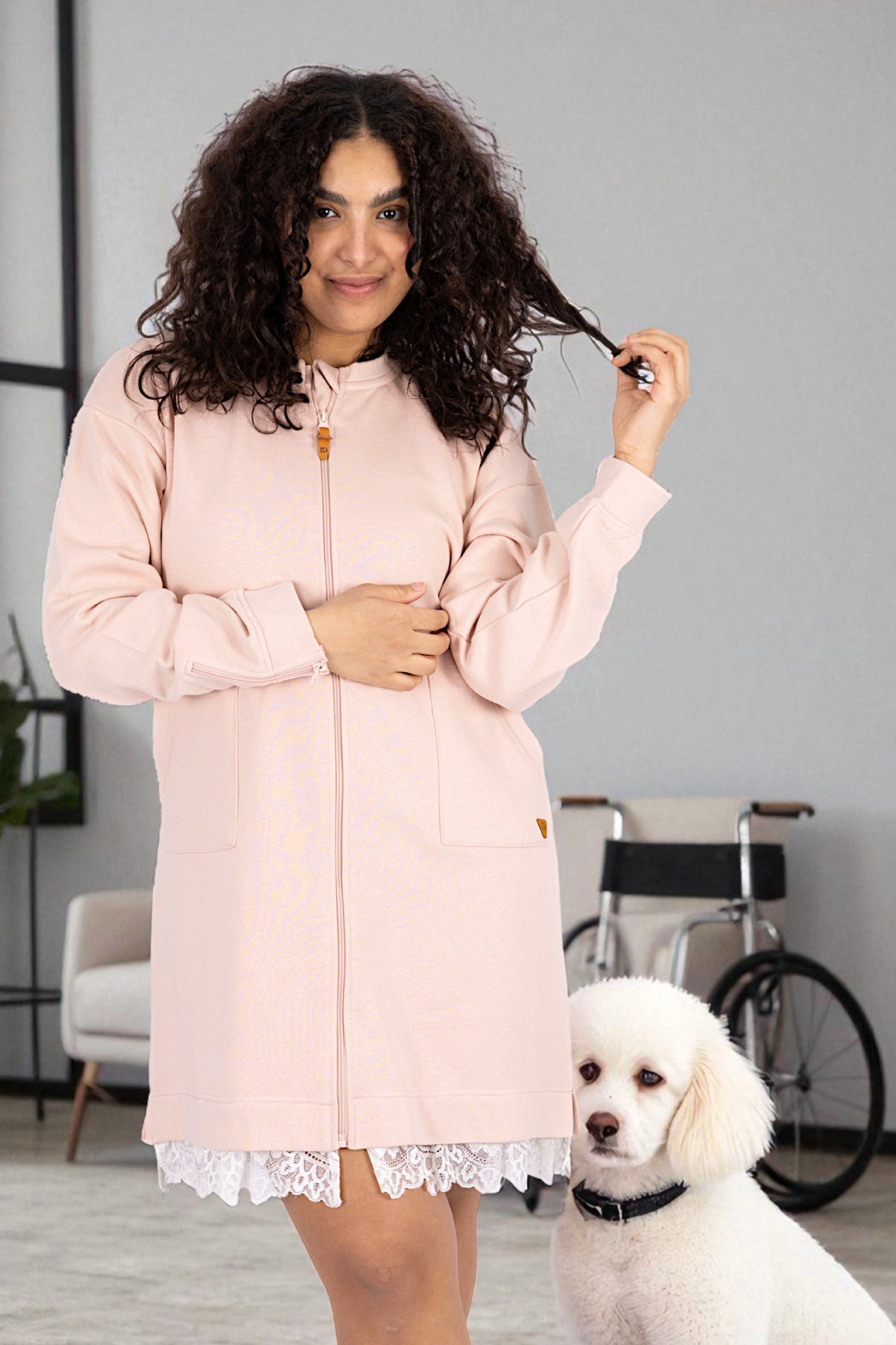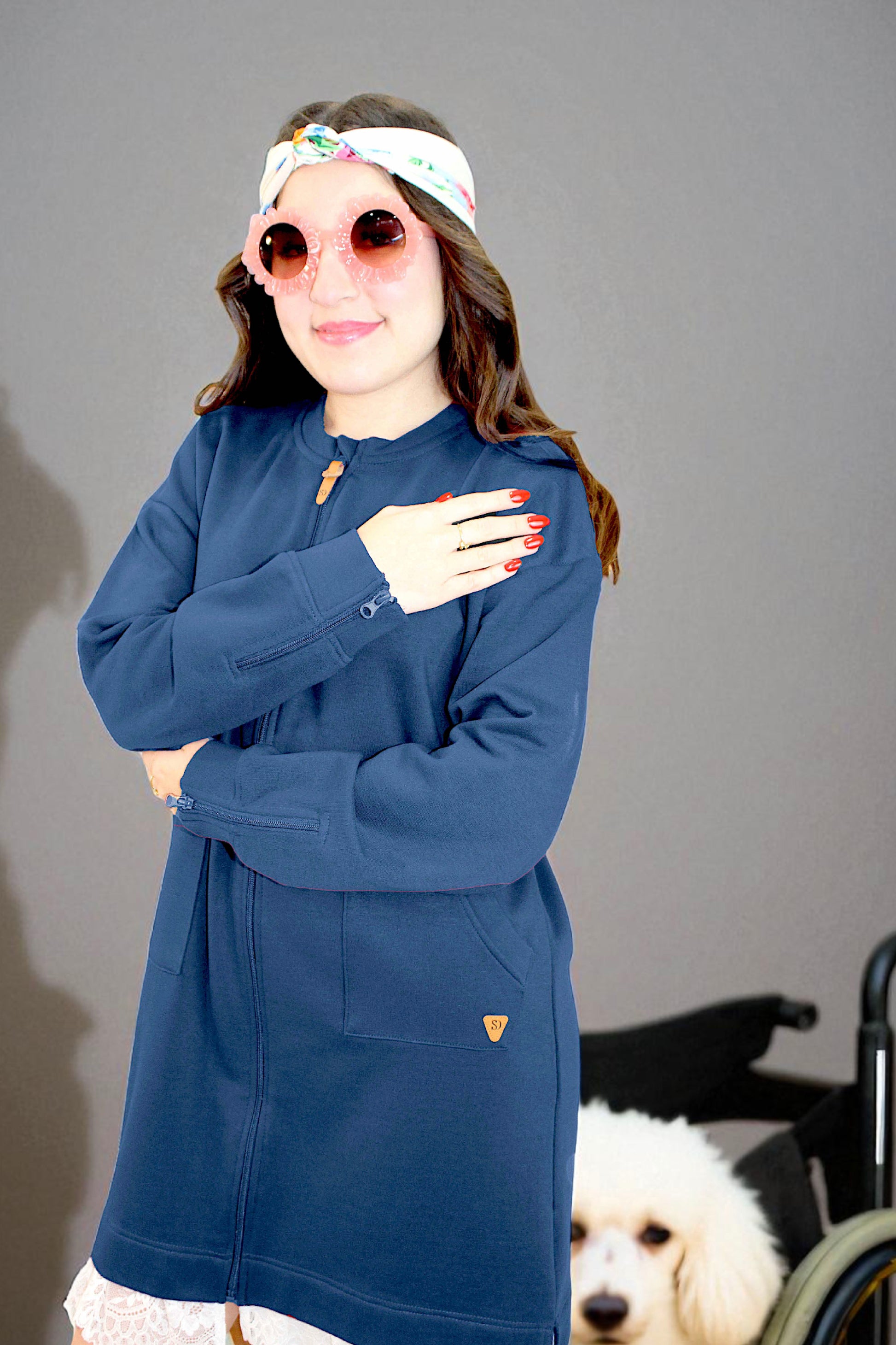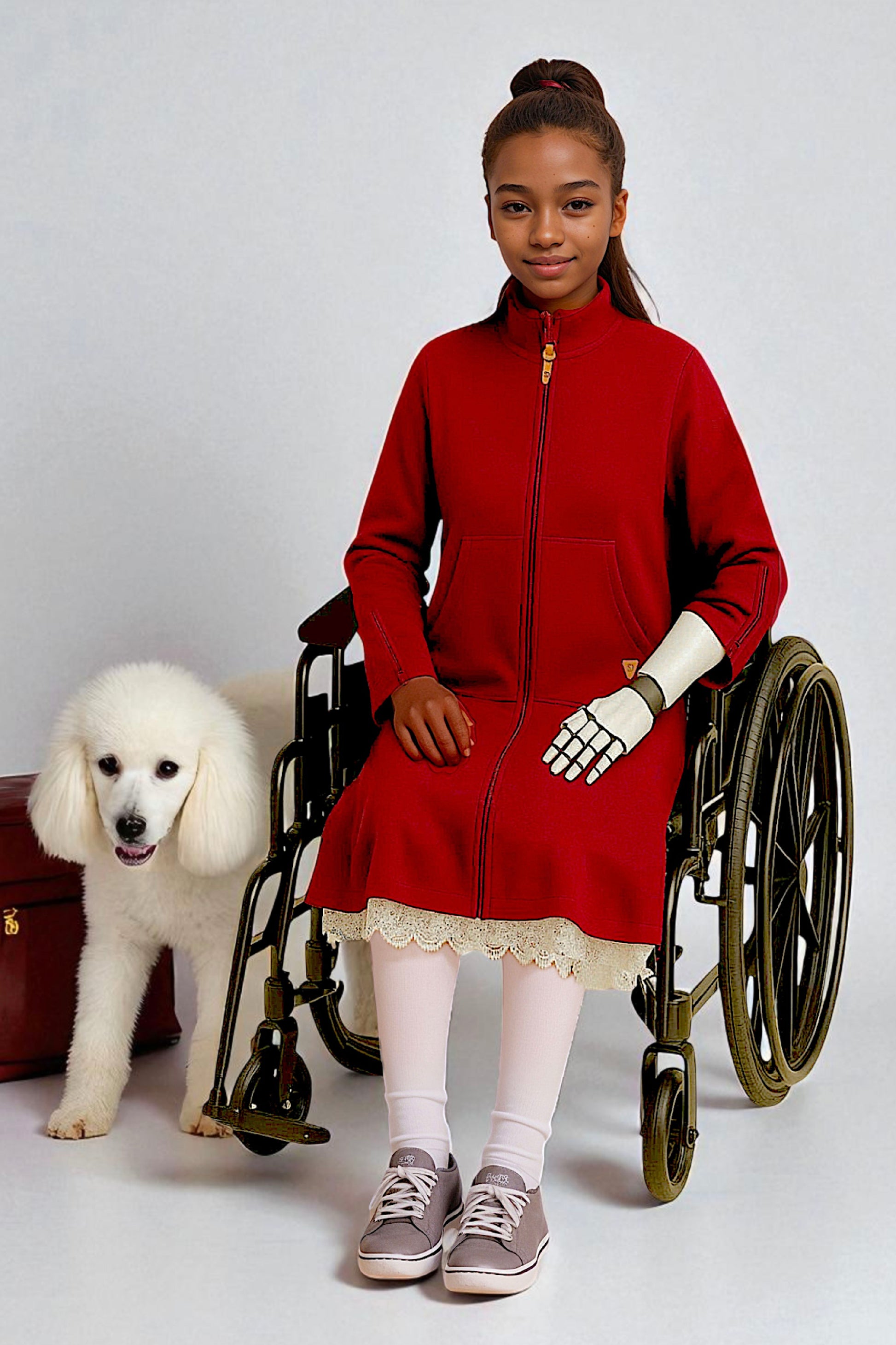 Adaptive Kids Sweatshirt Dress with Full Front Zipper and Easy-Undressing Sleeves