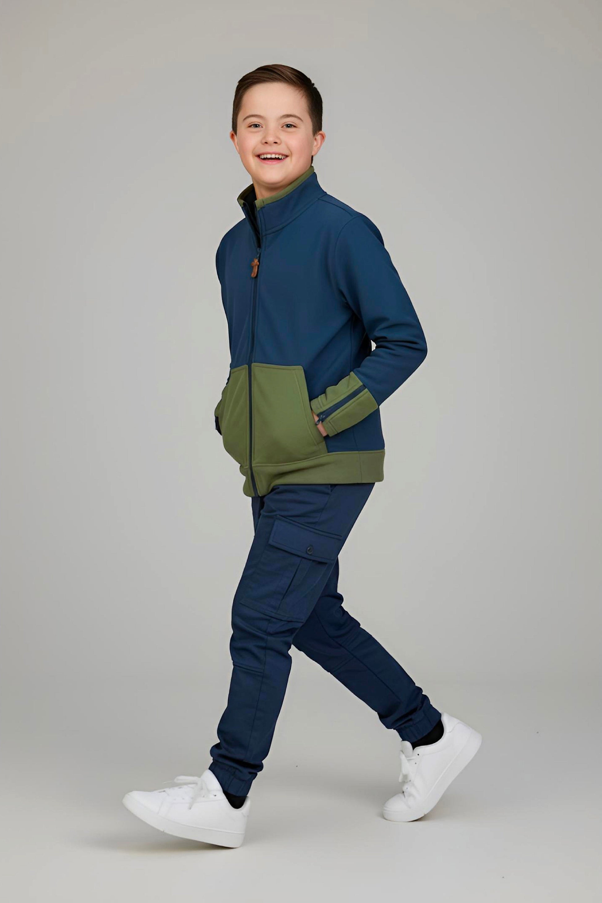 Adaptive Kids Jacket: Front Full Zipper, Cargo Pocket, Easy-Undressing Sleeves