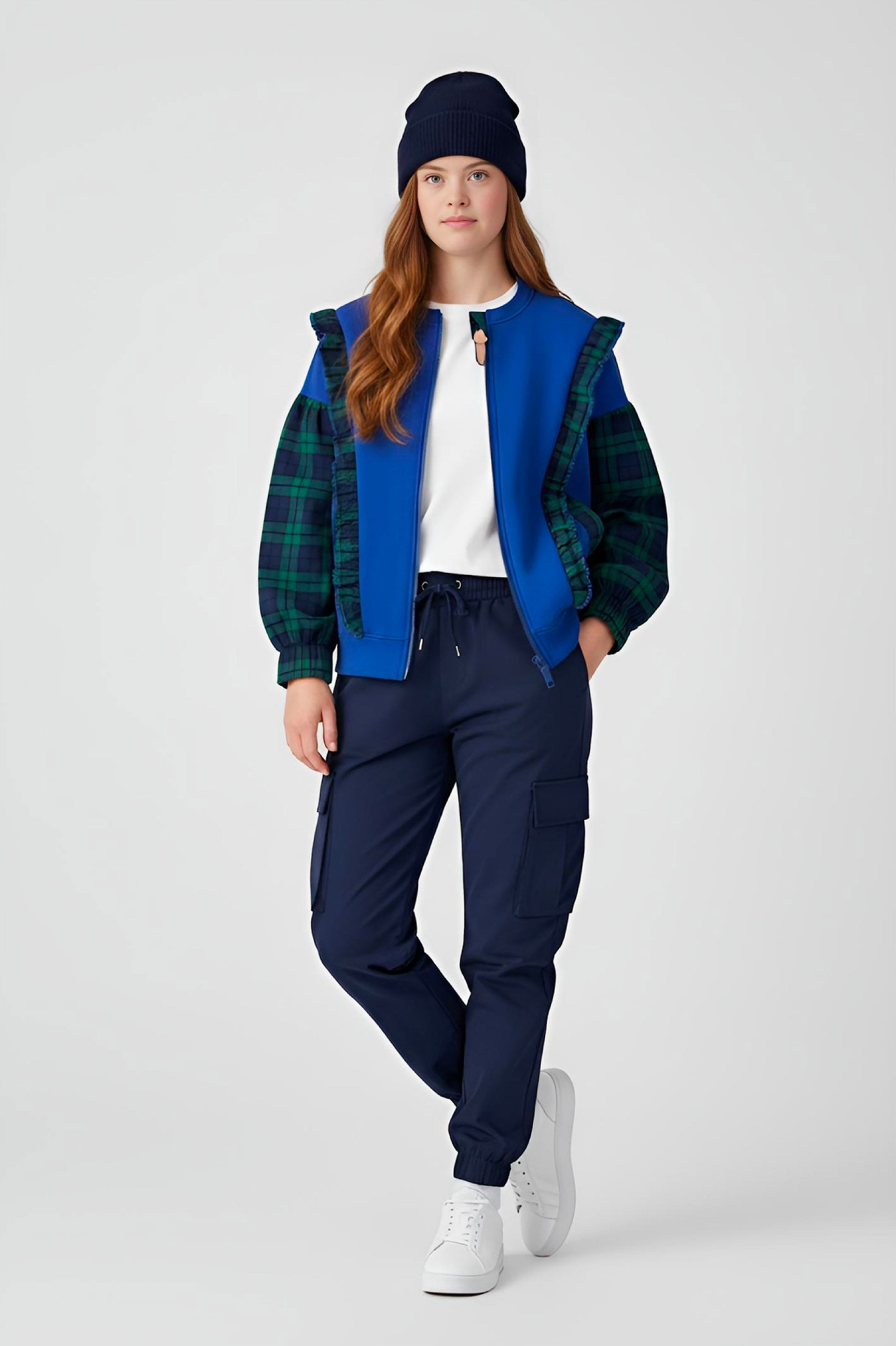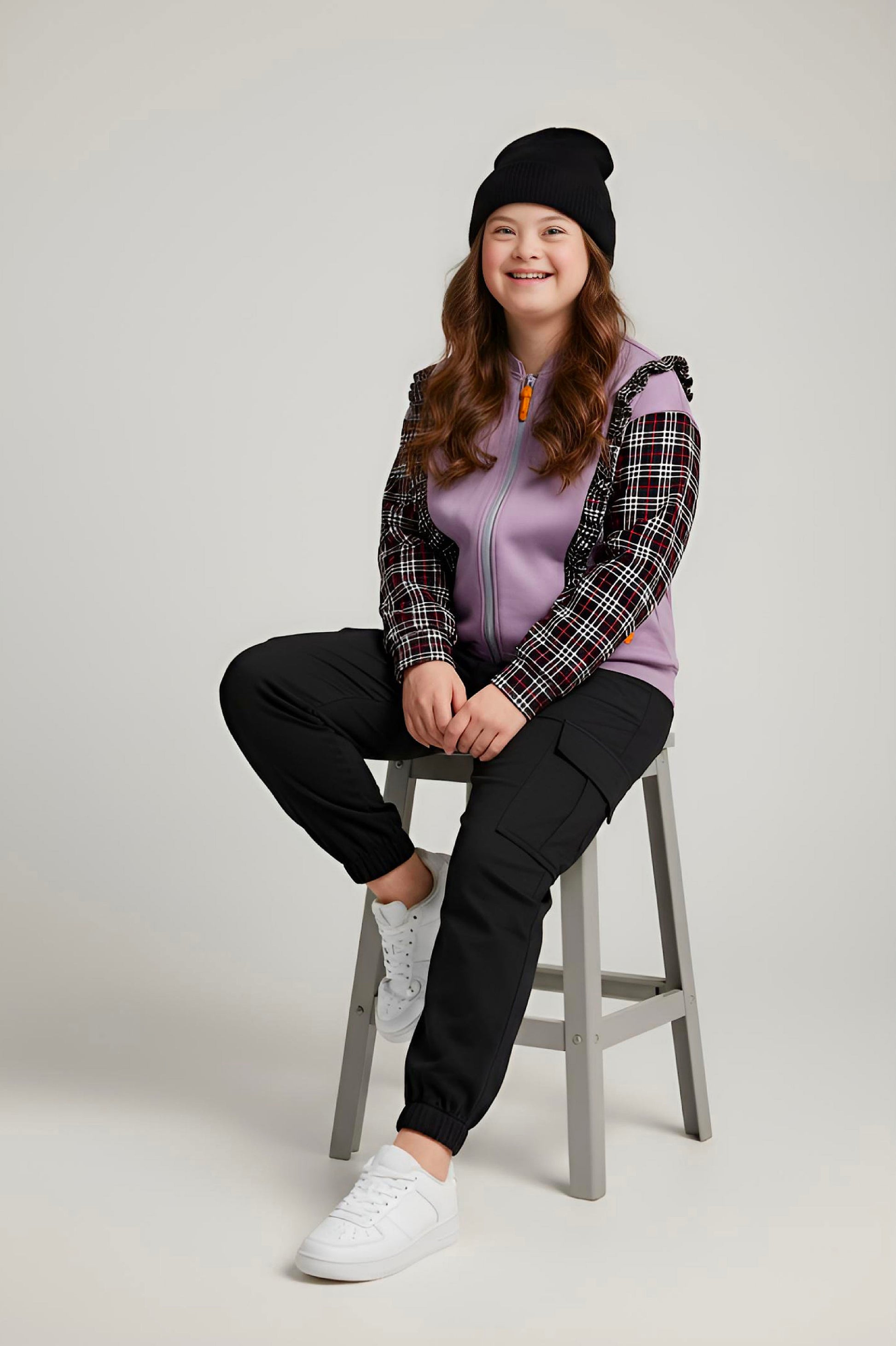 PLAID FABRIC ACCENTS: Elevate your fashion game with plaid fabric accents and easy-to-use zippers at the Dolman sleeves, making it effortless to stay stylish on the go.