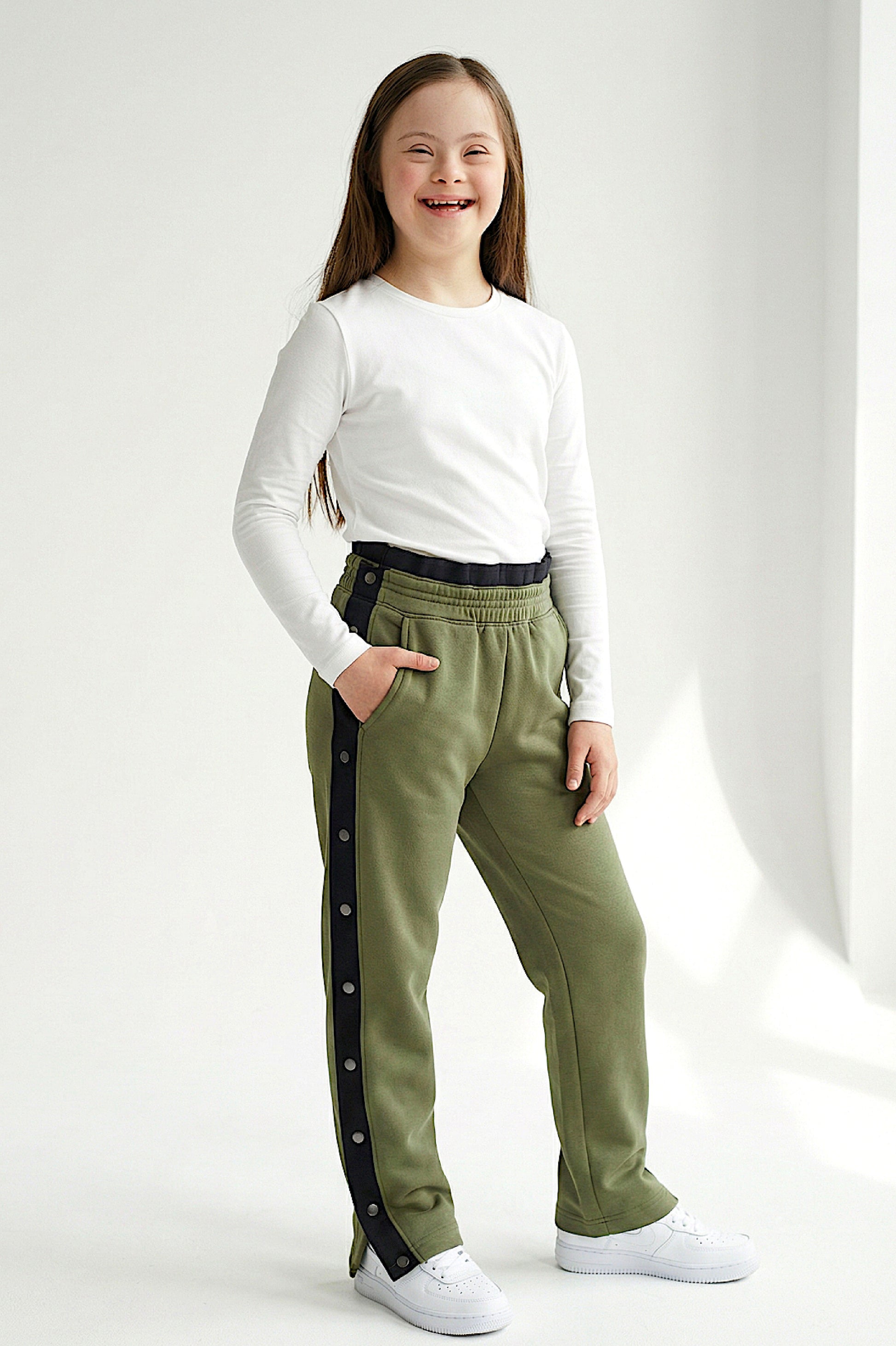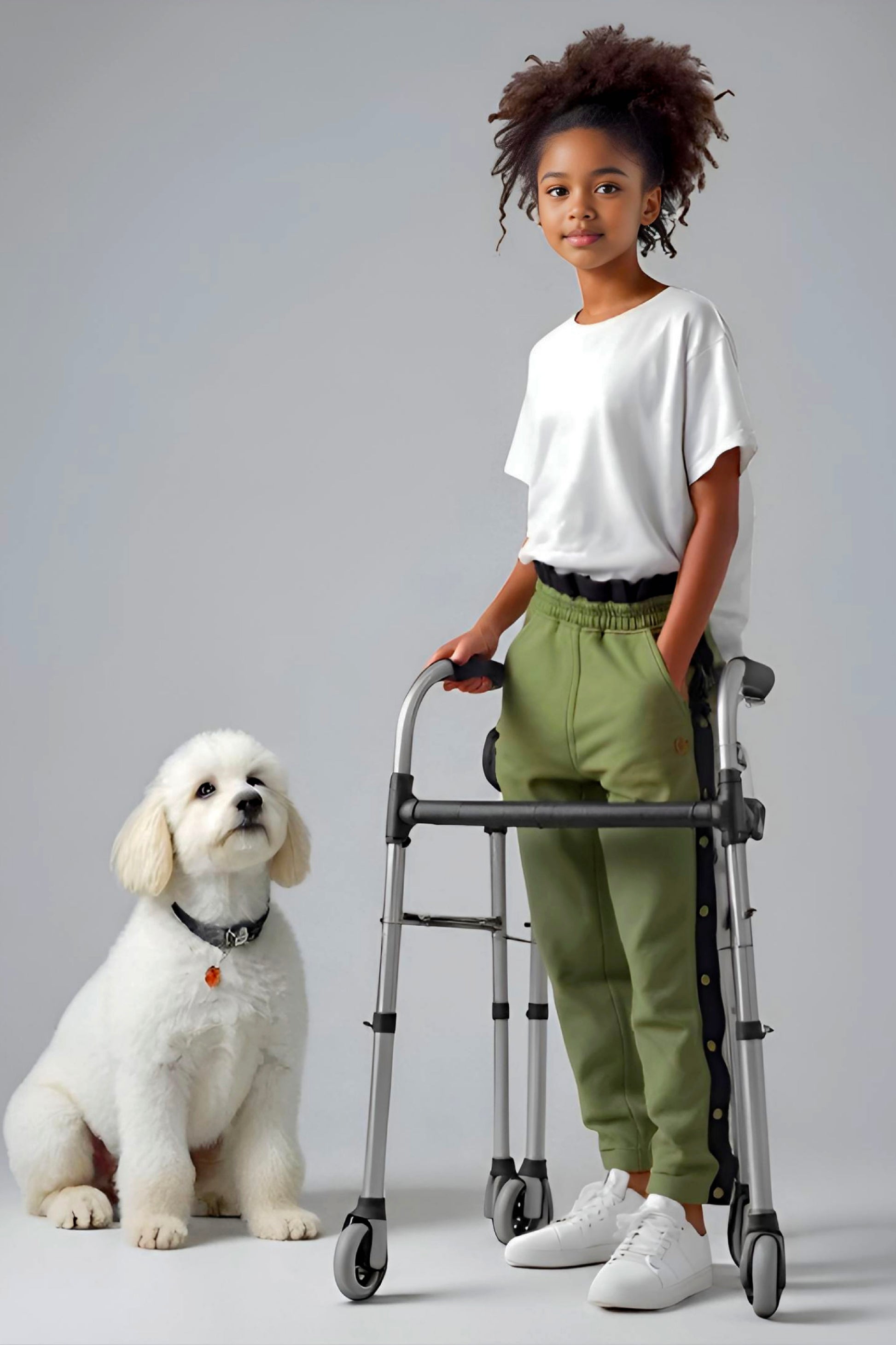 Adaptive Kids Sweatpants, with Full Elastic Waist & Side Full Zipper for Easy Undressing