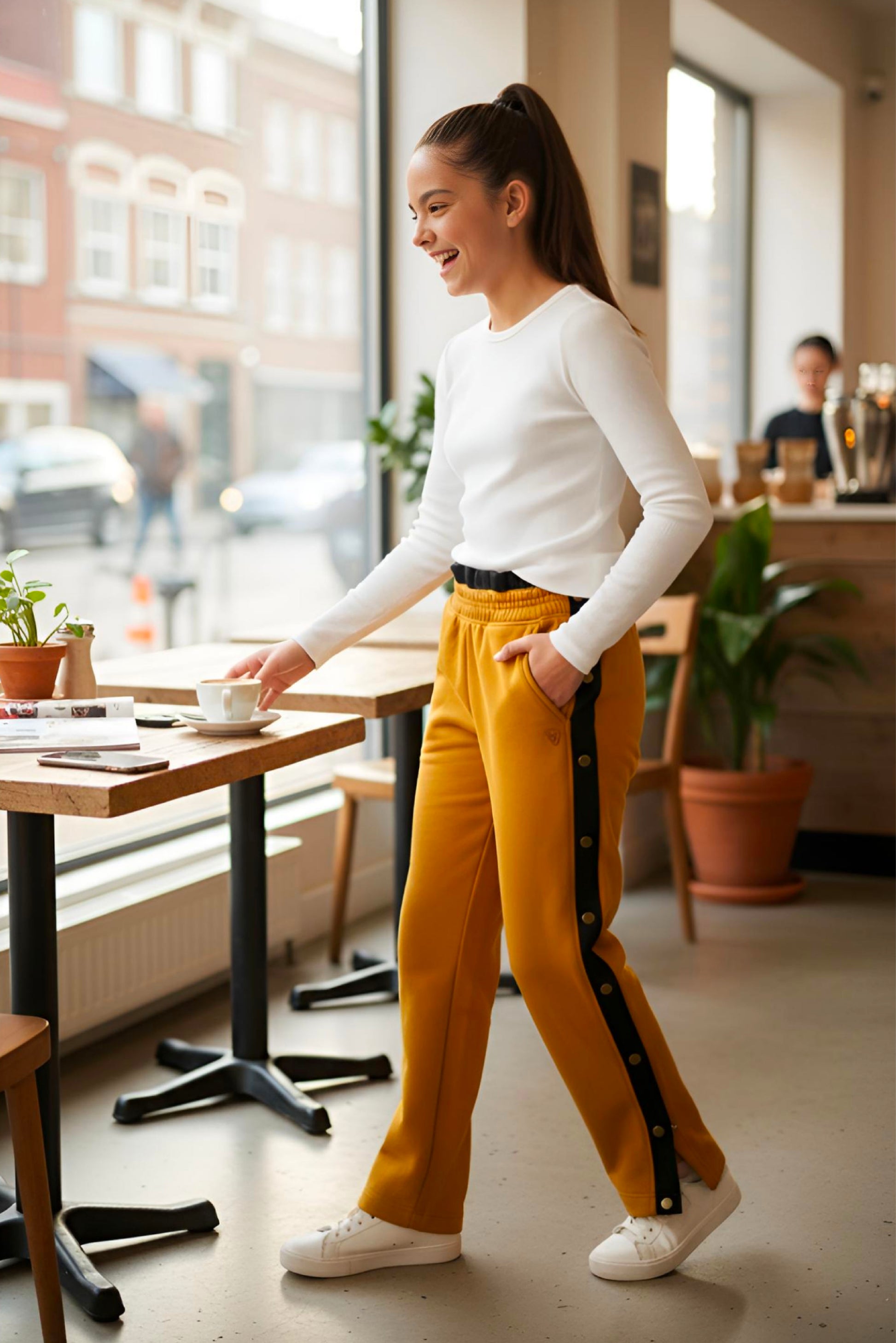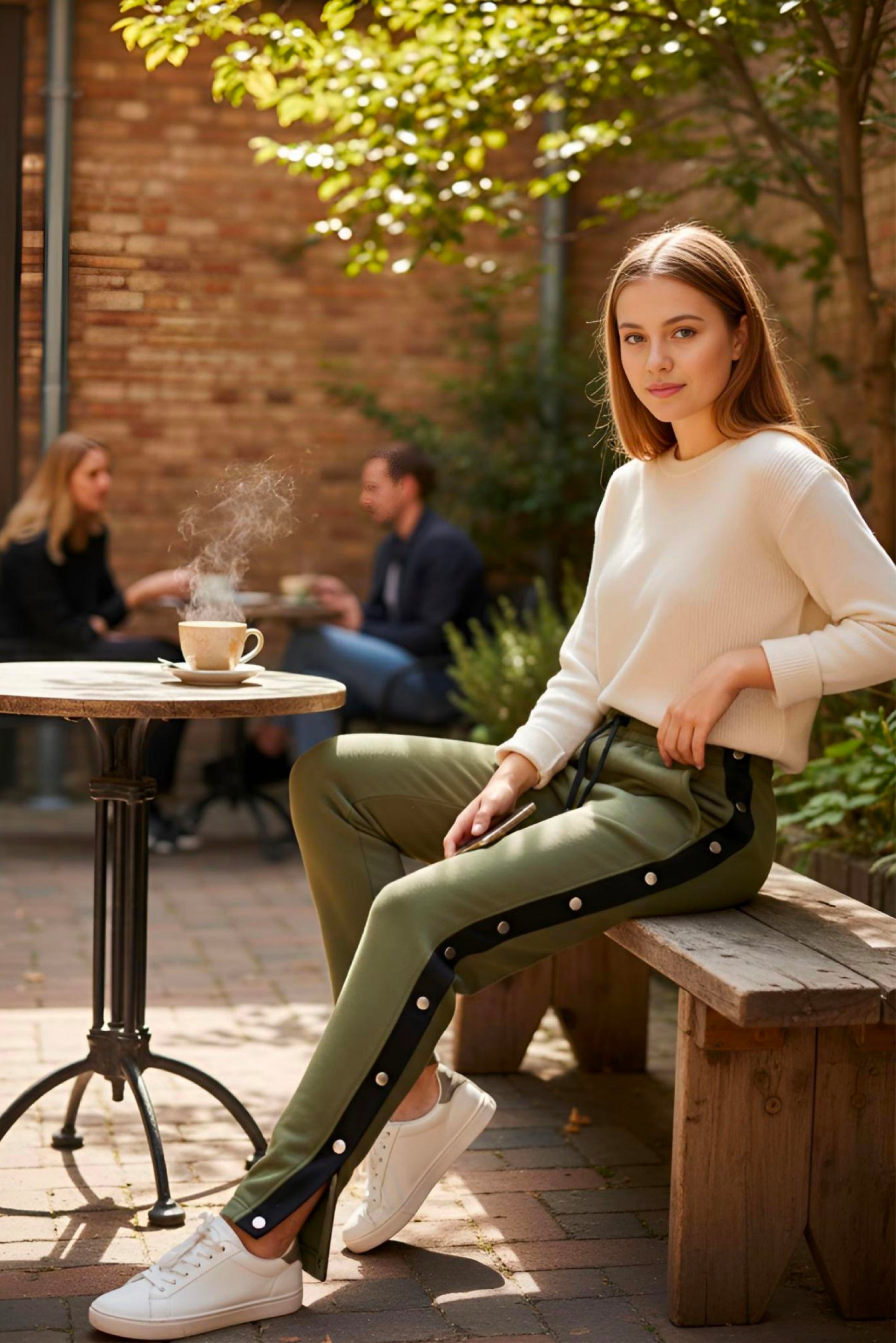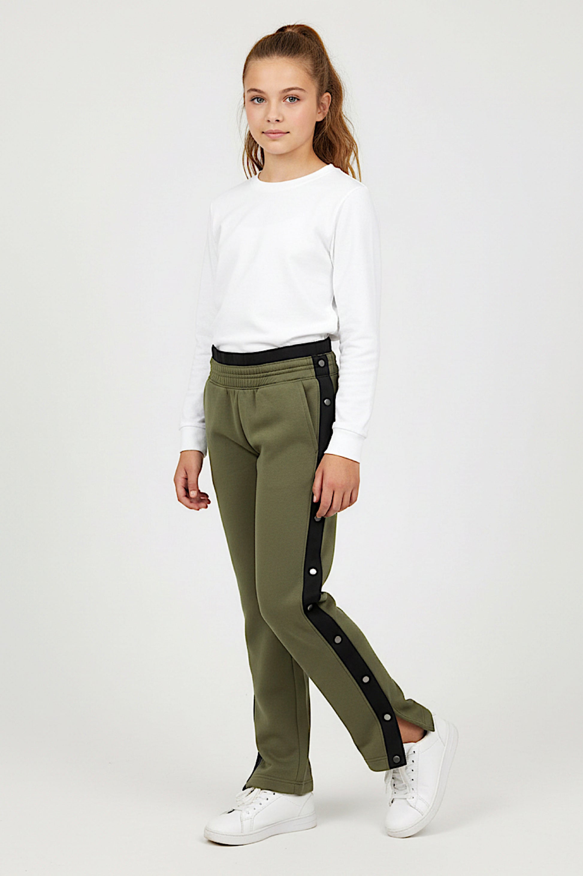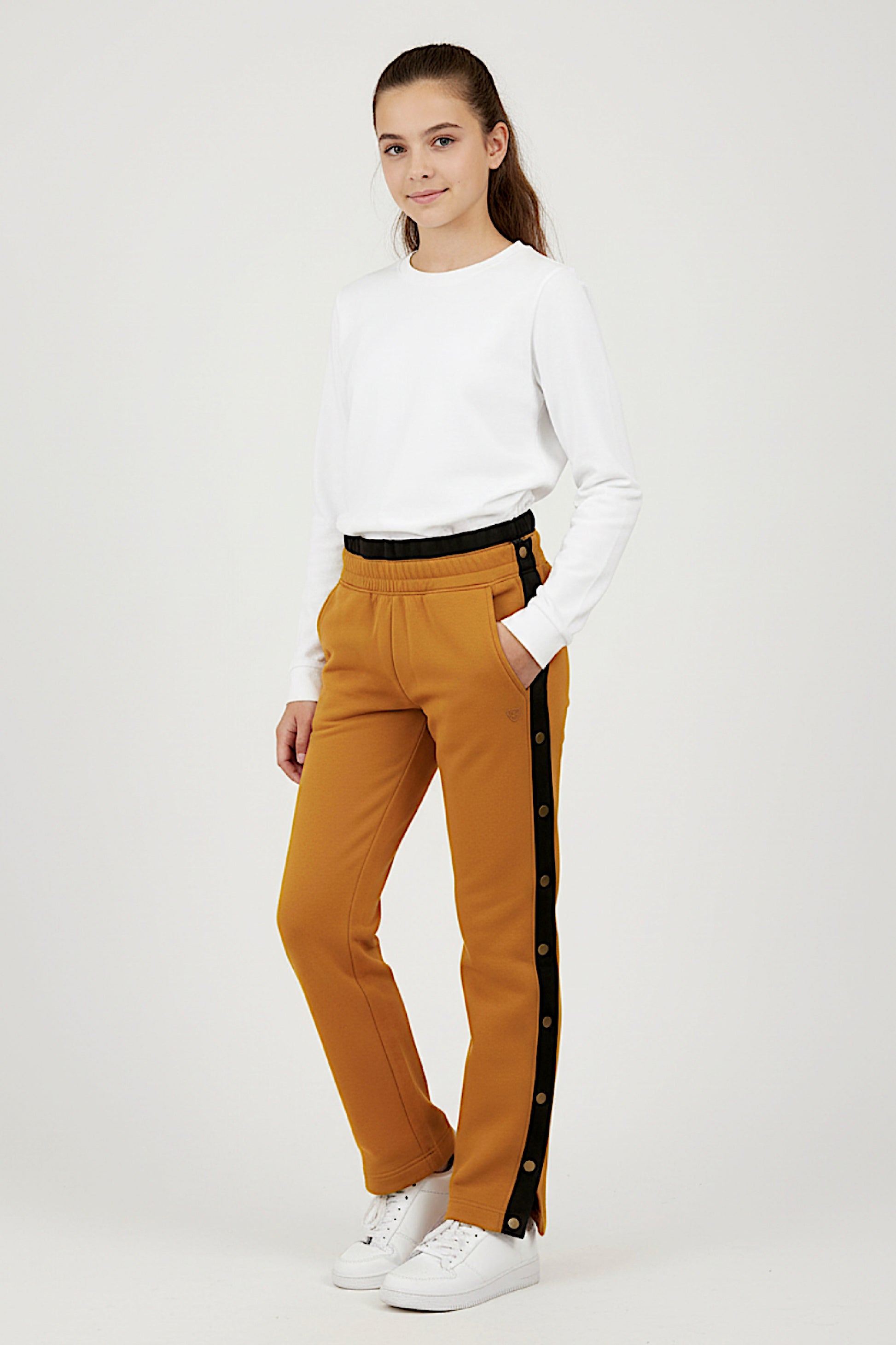 DECORATIVE FLAIR: Fashionable snaps add a stylish touch to these sweatpants, elevating their overall appeal and making them a fashionable choice for any occasion.