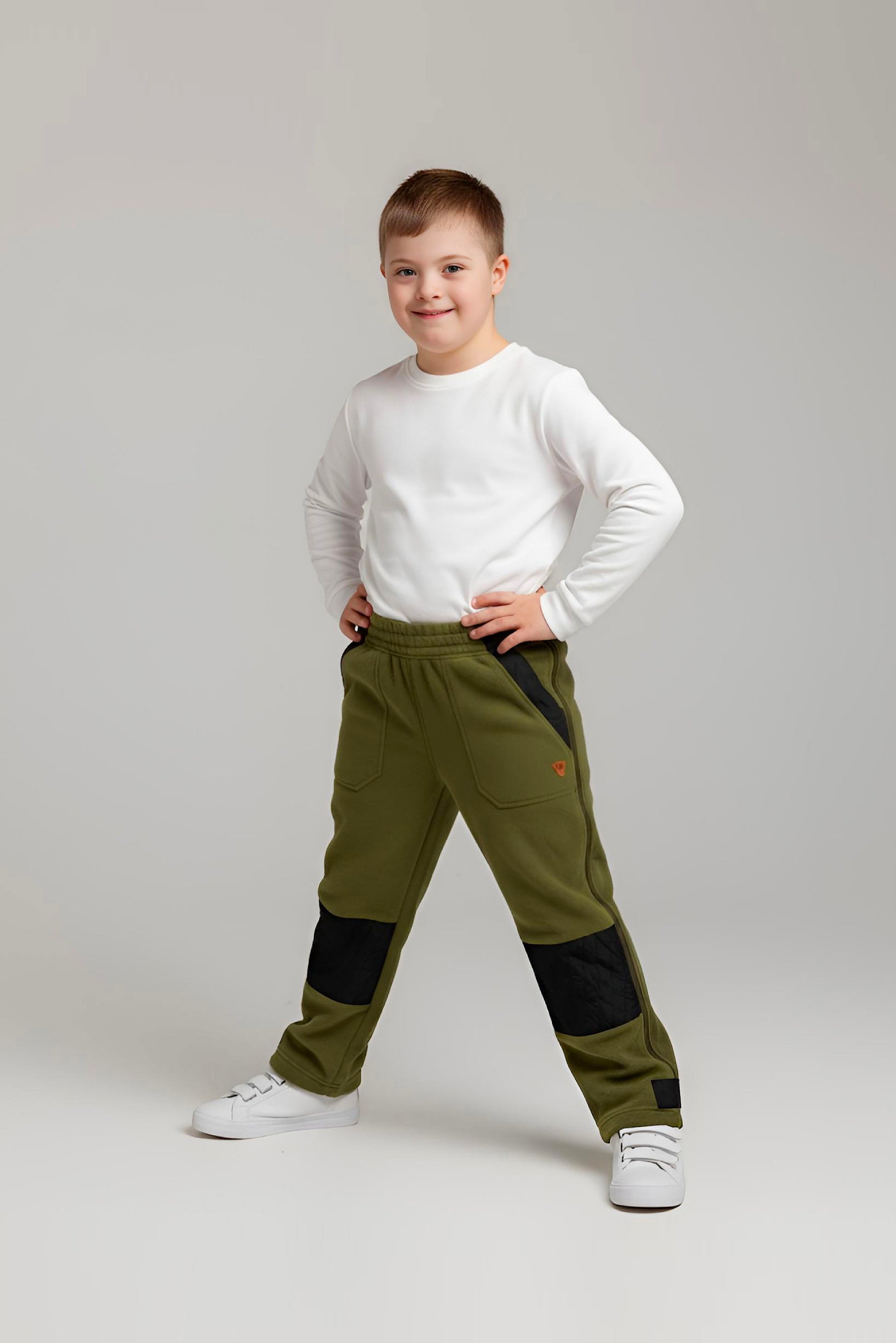 Adaptive Kids Polar Pants, Adjustable Waist, Knee Insert & Full Zipper for Easy Undressing