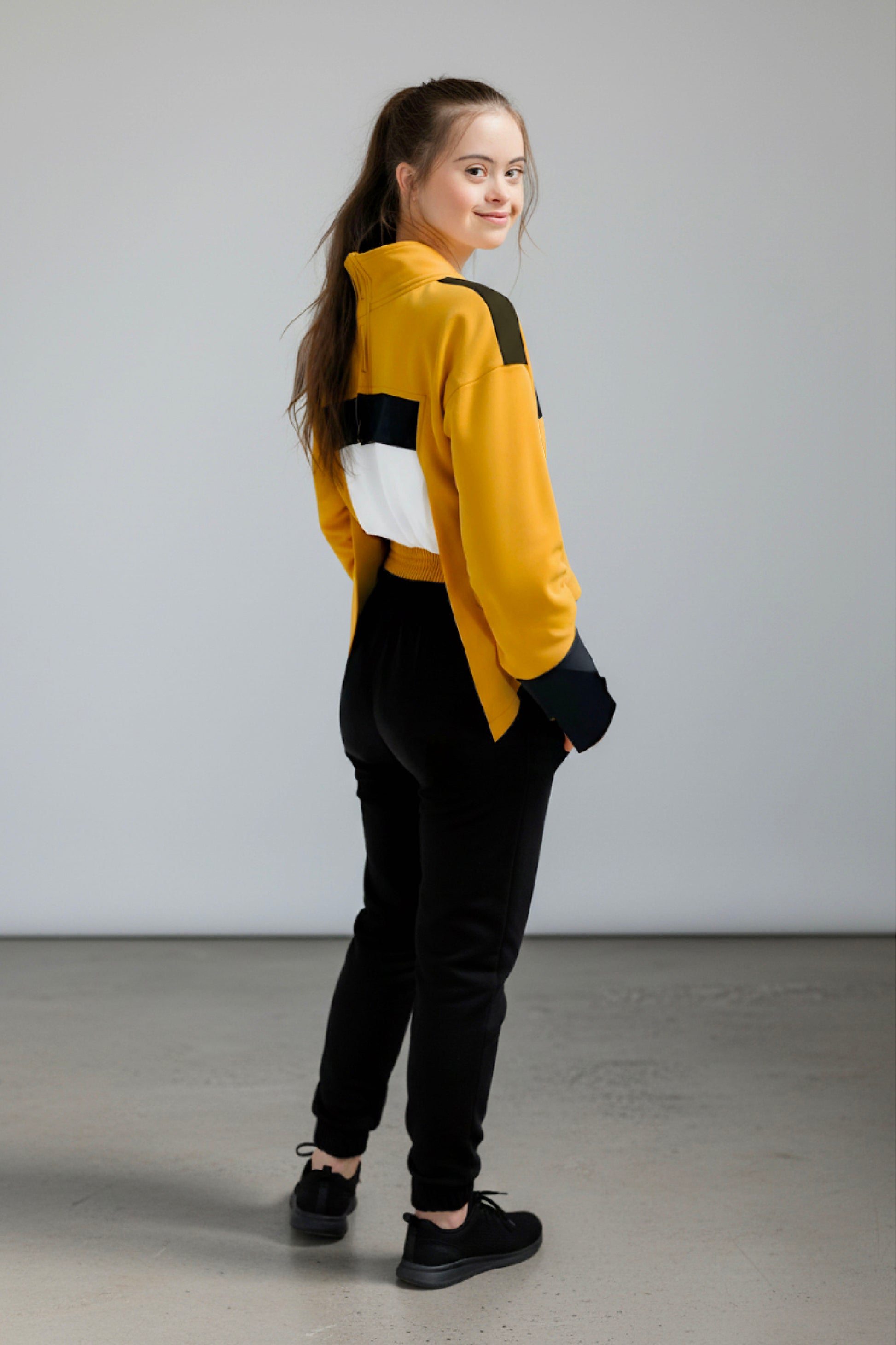 Our special Adaptive Unisex Sweatshirt, designed with care for those looking for something unique and stylish. This jacket features a classic collar and a half zipper at the front, adding a touch of sophistication to its design. The fashion shiny contrast colour fabric at the chest, cuff, and cargo pocket elevates its style, giving it a luxe and trendy look. What sets this sweatshirt apart is its thoughtful design for comfort and convenience. The back is closed with a flip-flap secured, allowing for easy adjustments and ensuring a comfortable fit. This feature makes it handy for individuals who prefer a customizable fit. To further enhance usability and protection, we've added an inside front zipper placket with a cover puller for the neck. This not only provides added security but also helps protect the neck from any discomfort. Additionally, The leather logo pull makes opening the zipper effortless, adding a touch of luxury to the sweatshirt. To make your daily wear easier and more stylish, choose our special Adaptive Unisex Sweatshirt a perfect blend of fashion, functionality, and comfort.