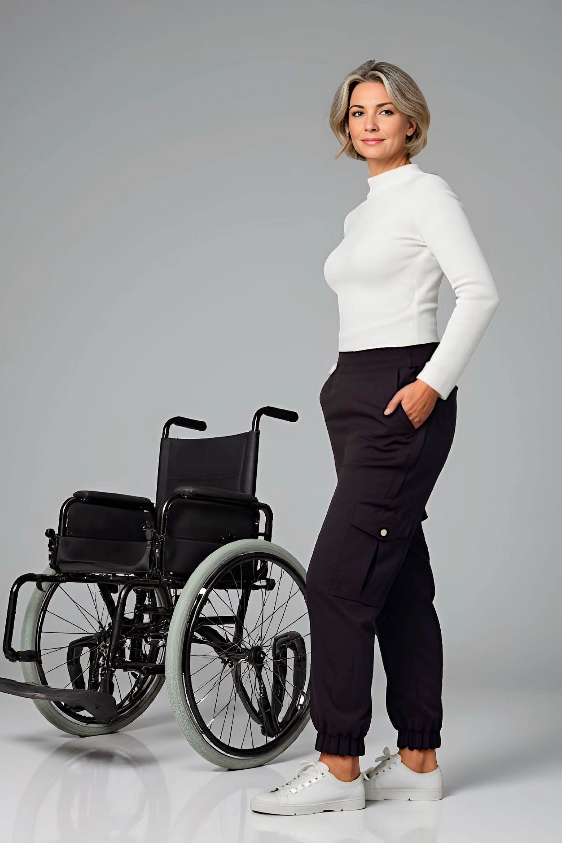 Women's Adaptive Clothing: Stretch Classic Cargo Pocket Pant, Elastic Waistband, Zipper Each Side for Easy Dressing