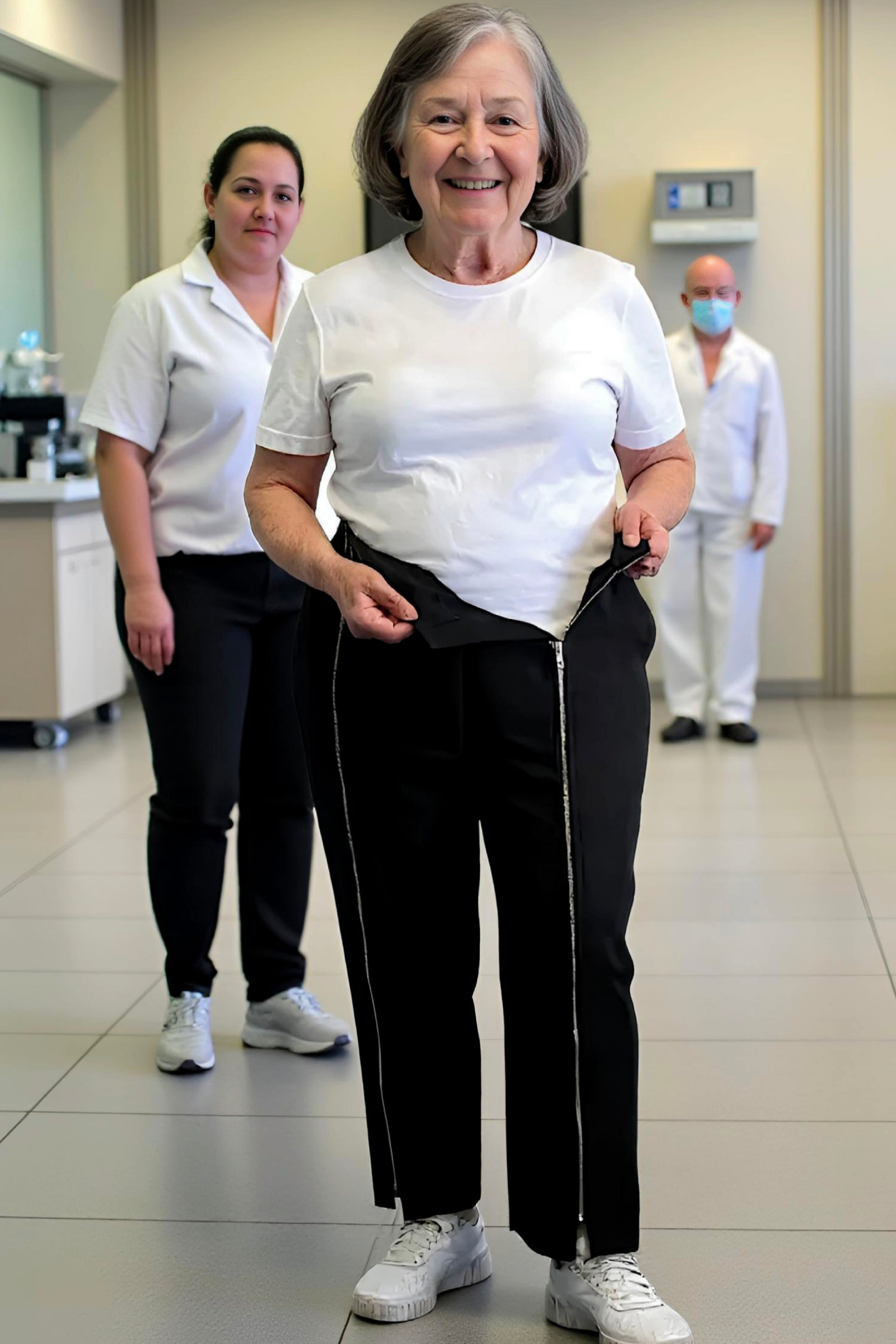 Women's Adaptive Clothing: Stretch Trousers Pant, Waist Elastic, and a Front Full Leg Zip for Easy Undressing