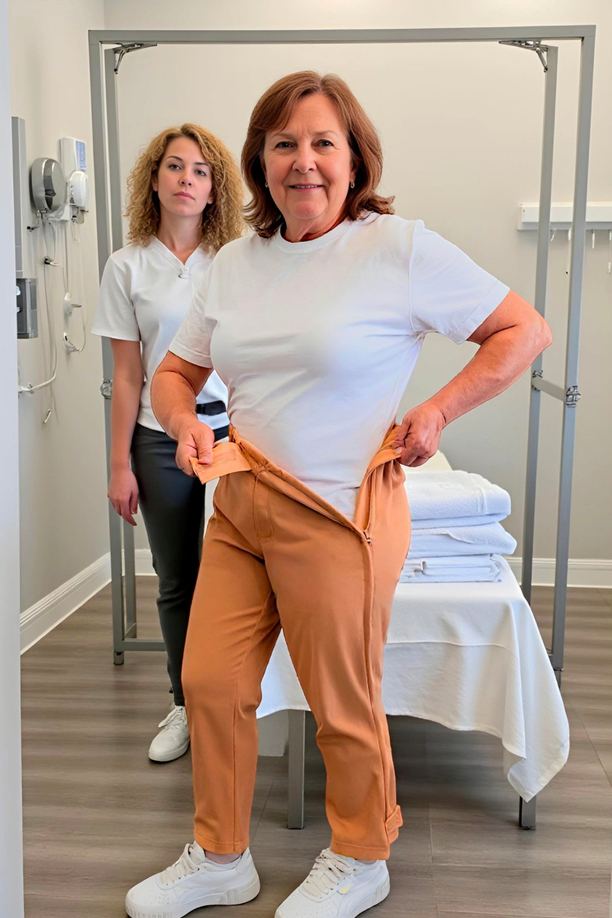 Elevate your comfort and convenience with our Women's Trousers Pant, specially designed for individuals with mobility challenges. These pants feature an elastic waistband at the back, ensuring a comfortable fit and ease of movement. The front waistband is classic and adds a touch of sophistication to the design. The side seam is equipped with a full-leg zipper that opens completely, making dressing and undressing effortless. A long placket at the side elegantly covers the zipper, adding a chic touch to the design. Additionally, the side seam flap, extending from the front to the back at the waist seam, allows for easy adjustment, ensuring a perfect fit for everyone. The pant also includes a front side pocket, adding both functionality and style to this chic and classic design. Experience style and comfort combined in our Adaptive Women’s Trousers Pant. Perfect for everyday wear, these pants offer functionality without compromising on elegance.